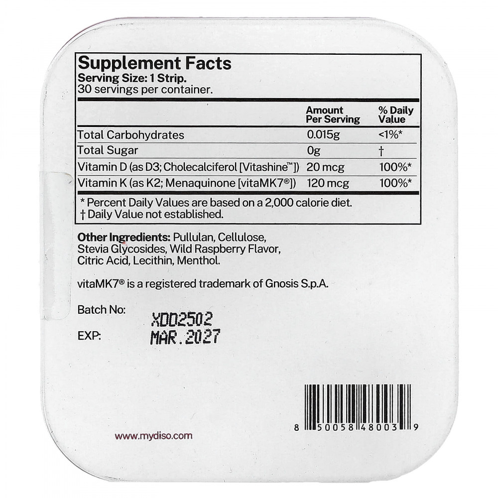 Кальций — важный минерал, необходимый для поддержания крепких и здоровых костей. Но если вам не хватает витаминов D3 и K2, организму будет сложно их усваивать, что подвергает риску здоровье зубов и костей. Так что не имеет значения, выпиваете ли вы стакан молока перед сном и придерживаетесь сбалансированной диеты с большим количеством кальция, ваш организм просто не сможет усвоить их ценные свойства. Вместо этого позвольте своему организму насладиться преимуществами кальция с добавками Diso D3 и K2! D3 и K2 от Diso сочетают в себе преимущества добавки с витамином D3 и добавки с витамином K2 в одной удобной растворимой полоске.