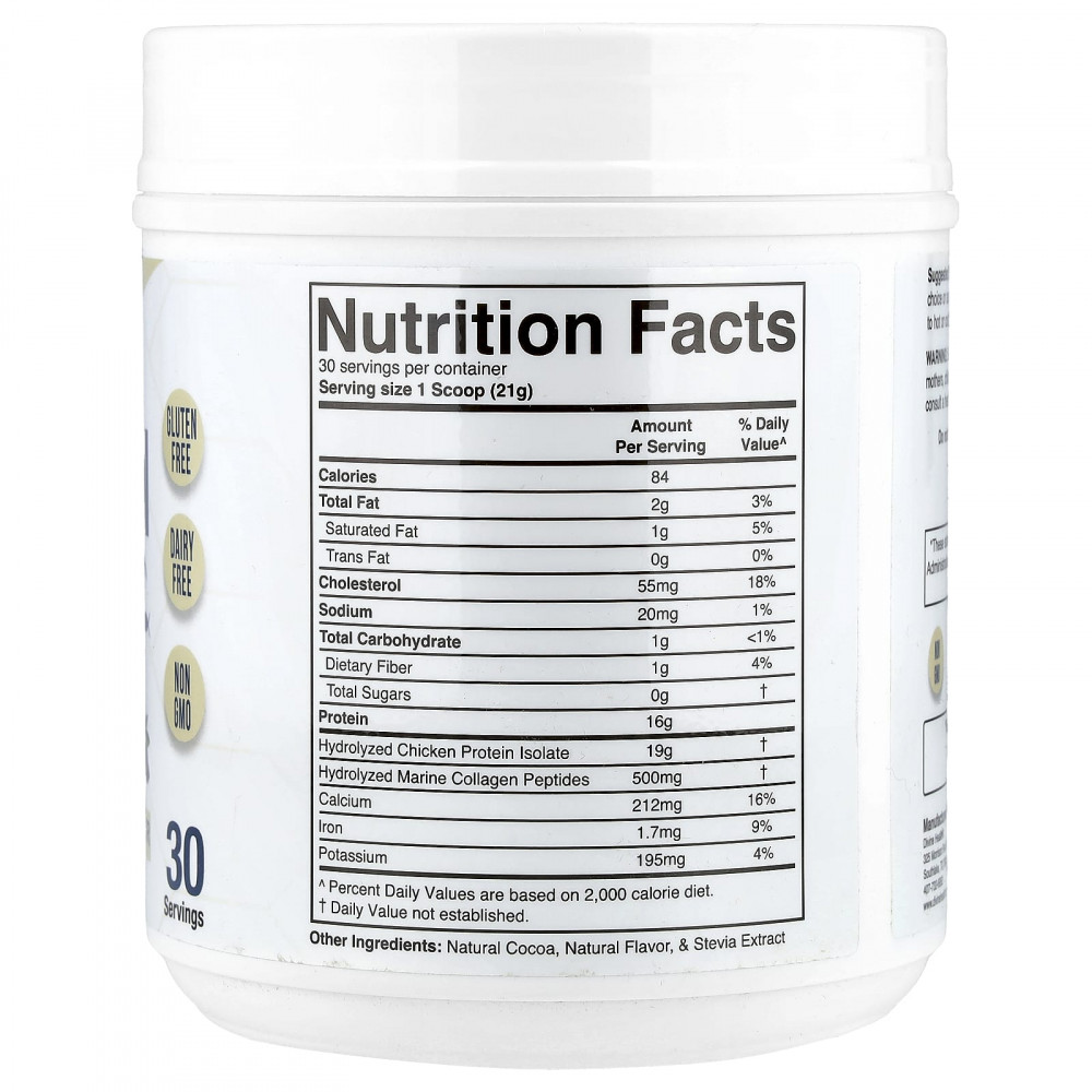 Этот порошок коллагена, полученный из гидролизованного изолята куриного белка и морских пептидов, содержит коллаген типа I, II и III.
