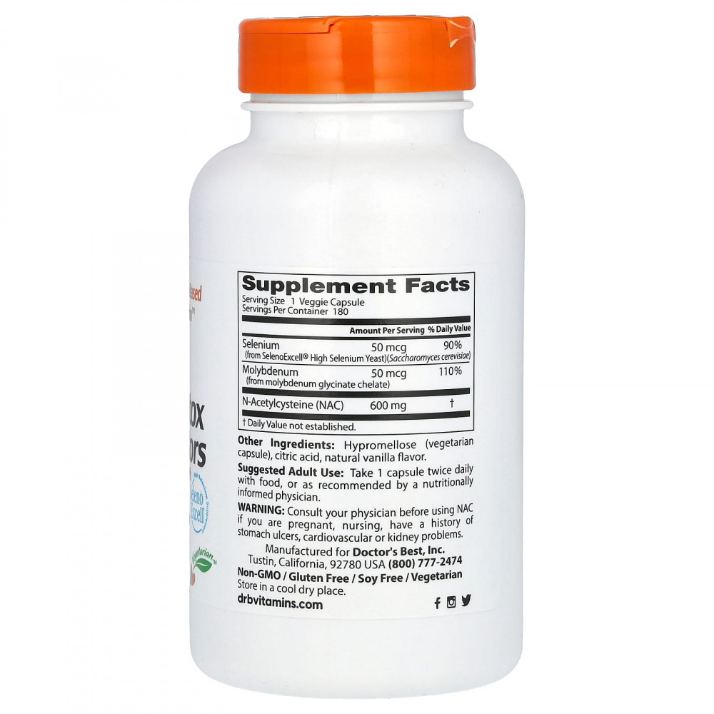 NAC для регуляции процесса детоксикации от Doctor's Best поддерживает выработку и использование глутатиона — главного защитного и регулирующего антиоксиданта, который естественным образом концентрируется во всех здоровых клетках. Доказано, что NAC (N-ацетилцистеин) способствует выработке глутатиона, в то время как селен и молибден необходимы для облегчения роли глутатиона в поддержке производства энергии, детоксикации и других фундаментальных жизненных процессов.
