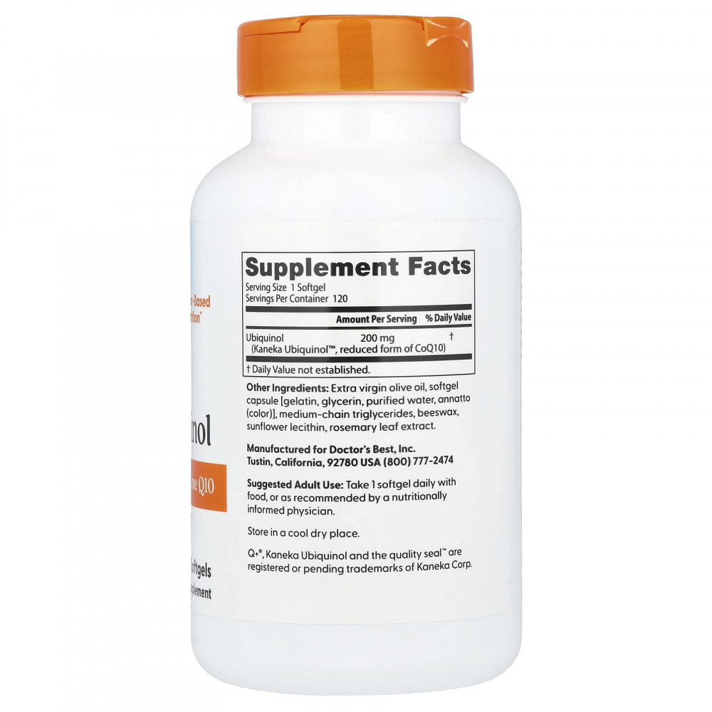 Убихинол от компании Doctor's Best содержит восстановленную форму коэнзима Q10, необходимого для поддержания хорошего самочувствия. И убихинол (CoQ10-H2), и убихинон (CoQ10) метаболически активны, уникальным образом способствуя антиоксидантной поддержке, здоровью сердца и выработке энергии клетками. Убихинол помогает в регенерации антиоксидантов, таких как витамин C и витамин E, потенциально повышая биодоступность для взрослых выше среднего возраста, испытывающих проблемы с уровнем питательных веществ или их усвоением.