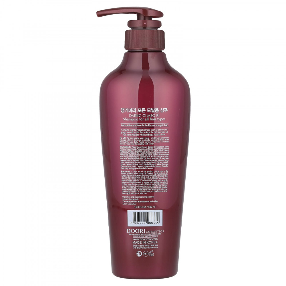 Содержит экстракты восточных трав, таких как пион и имбирь, а также масла, которые смягчают волосы и делают их здоровыми и придают им естественный блеск.