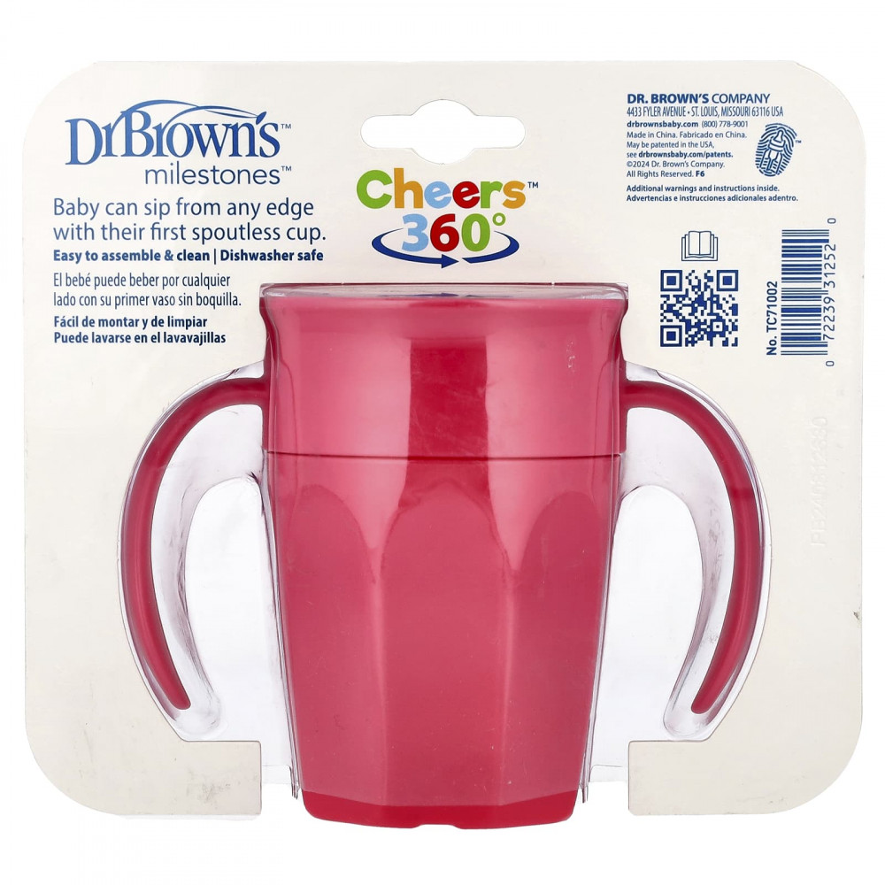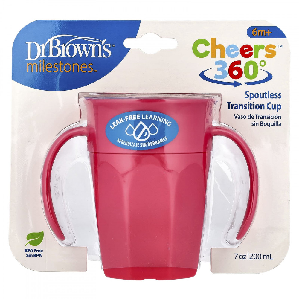 Сделайте переход ребенка на большую детскую чашку успешным с Dr. Чашка без носика Cheers360 ™ с ручками Brown's® Milestones ™. Эта чашечка-поилка с углом наклона 360 градусов позволяет ребенку пить с любого края, а прозрачный силиконовый клапан Sip and See позволяет ребенку заглядывать внутрь, не проливая его, чтобы научиться без утечек.