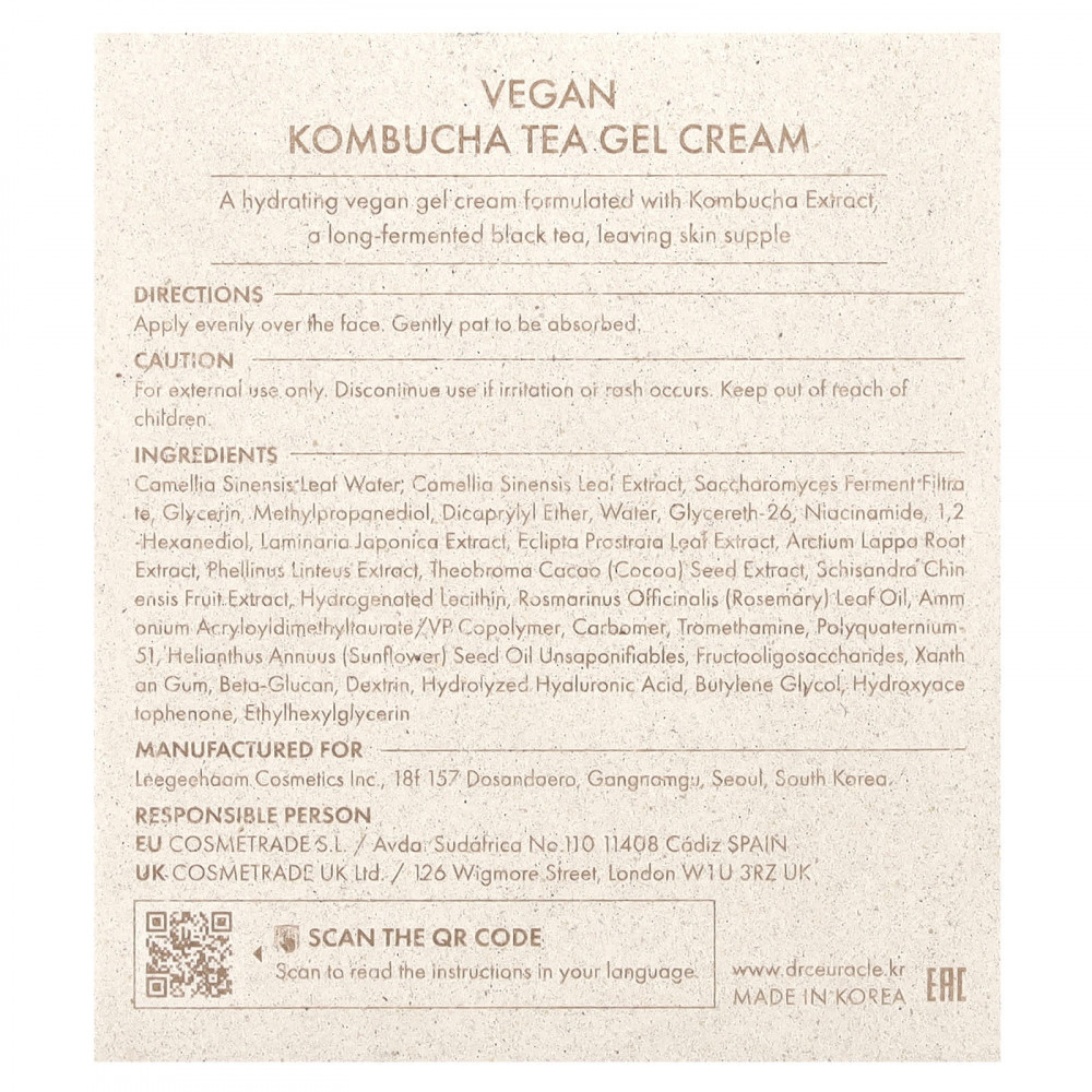 Увлажняющий веганский гель-крем на основе экстракта чайного гриба, черного чая длительной ферментации, придает коже эластичность.