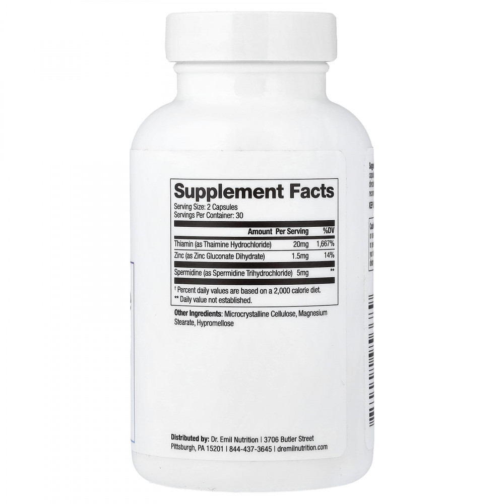 способствует омоложению клеток, чтобы обеспечить здоровое старение. Спермидин получен из зародышей пшеницы и способствует омоложению клеток, поддерживая здоровое старение.