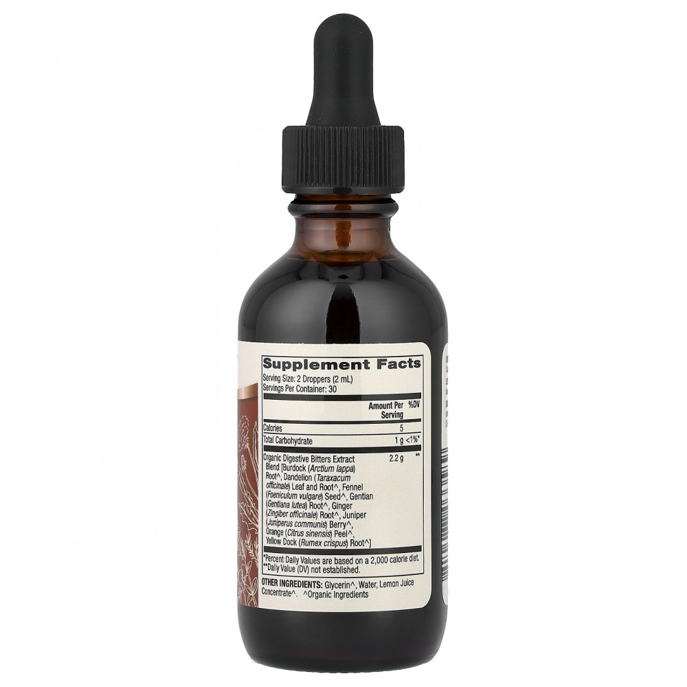 Наша органическая горькая настойка для пищеварения в каплях содержит смесь восьми растительных компонентов на основе лимонного сока, натурального ароматизатора «Мандарин» и экстракта цитрусовых. Она имеет сертификат USDA Organic и представляет собой формулу без спирта, которая включает любимые во все времена ингредиенты, такие как корень лопуха, листья и корень одуванчика, семена фенхеля, корень горечавки, имбирь, ягоды можжевельника, корень жёлтого щавеля и цедру апельсина.