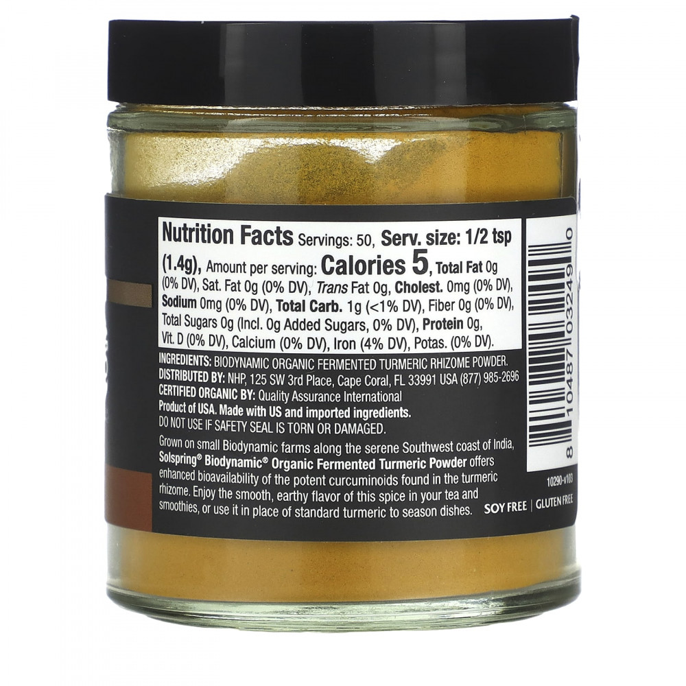 Порошок из органической ферментированной куркумы Solspring® Biodynamic® выращивается на небольших биодинамических фермах вдоль безмятежного юго-западного побережья Индии и обладает повышенной биодоступностью благодаря мощным куркуминоидам, содержащимся в корневище куркумы. Наслаждайтесь мягким, насыщенным вкусом этой специи в чае и смузи или используйте ее вместо обычной куркумы в блюдах.