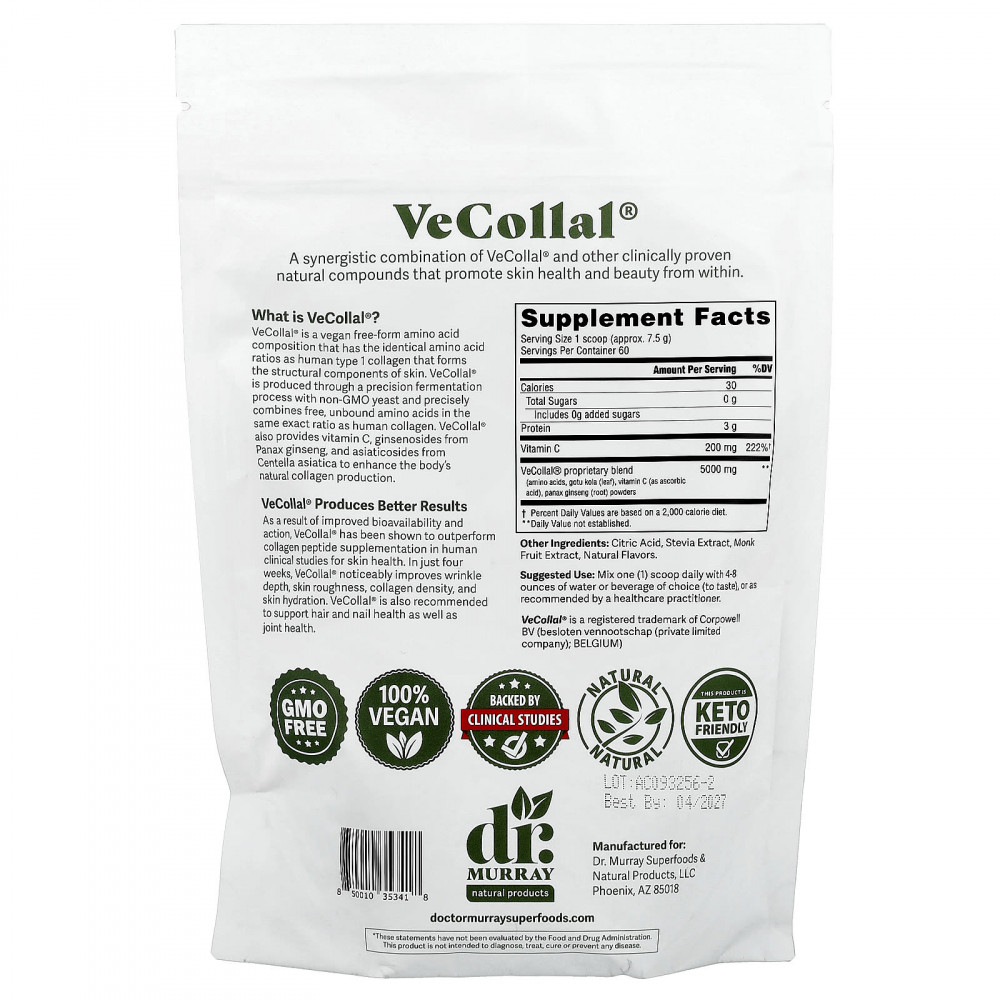 VeCollal® - это веганская аминокислотная композиция в свободной форме, которая имеет такое же соотношение аминокислот, что и человеческий коллаген 1 типа, который формирует структурные компоненты кожи. VeCollal® производится с помощью процесса прецизионной ферментации с использованием дрожжей без ГМО и точно сочетает в себе свободные несвязанные аминокислоты в том же точном соотношении, что и человеческий коллаген. VeCollal® также содержит витамин C, гинзенозиды из женьшеня обыкновенного и азиатикозиды из центеллы азиатской для усиления естественной выработки в организме коллагена.