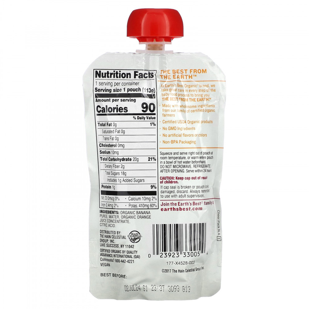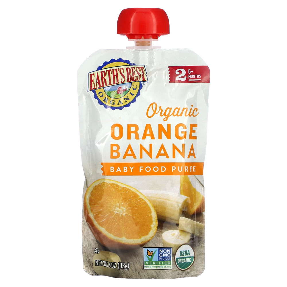 Апельсиновое и банановое пюре в пакетиках от Earth's Best Organic® — это восхитительная фруктовая смесь, которая поставляется в легкосжимаемых, закрывающихся пакетиках для удобного перекуса в дороге.