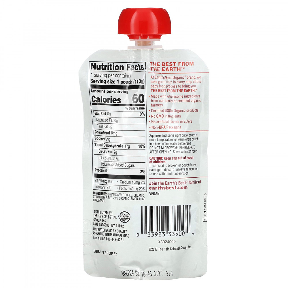 Органическое яблочное пюре, органическое клубничное пюре, < 1% концентрата органического лимонного сока.