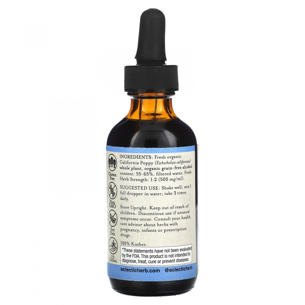 Свежий органический калифорнийский мак (Eschscholzia californica) цельное растение, без содержания сухого органического белка: 52-62%, фильтрованная вода. Прочность свежего трава 1: 2 (500 мг / мл).