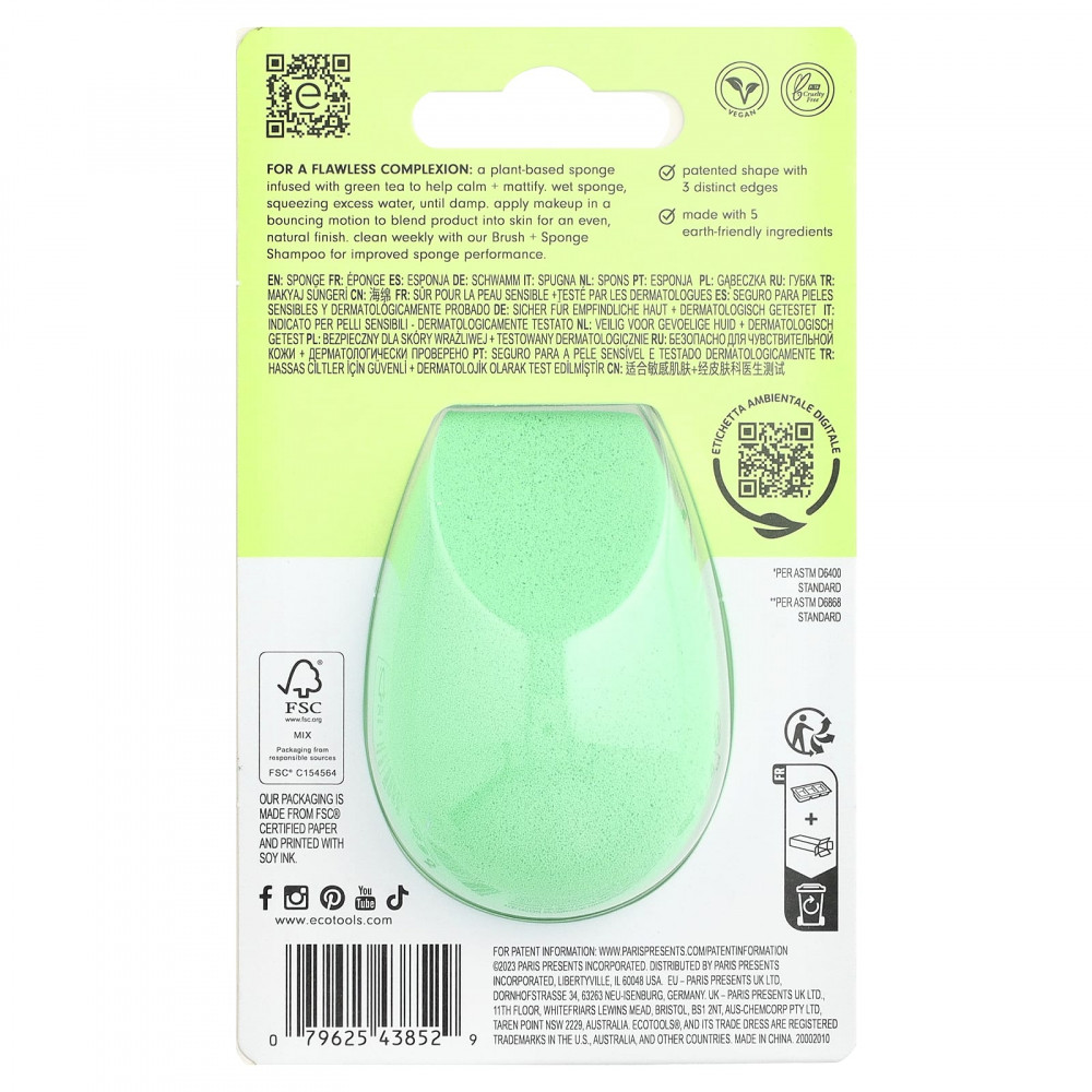 Безупречный цвет лица растительный спонж, насыщенный зеленым чаем, который успокаивает и матирует кожу.