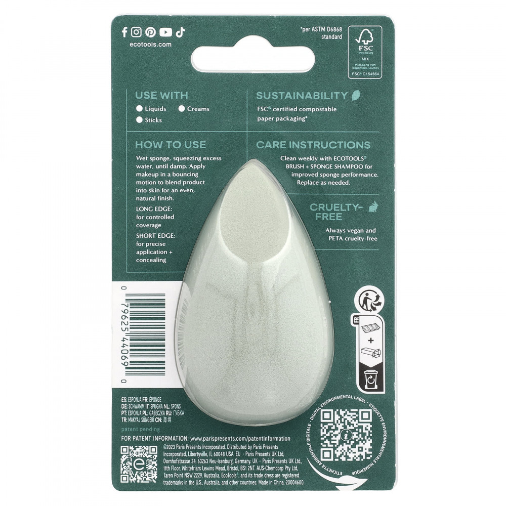 Губка для макияжа EcoTools Blurring Blender содержит ультра-мягкую упругую пену, которая снижает впитываемость макияжа, обеспечивая равномерное покрытие. Наши спонжи для смешивания макияжа лучше всего подходят для использования с жидкими, кремовыми и тональными тональными средствами, обеспечивая естественный финиш. Эта легкая и упругая губка для блендера создана из пенки с эффектом памяти, закрывающей облачность, которая впитывает меньше макияжа и сокращает количество отходов. Он также имеет 2 стороны для индивидуального покрытия. Используйте длинный край тональной губки для контролируемого нанесения, а короткий - для точного нанесения и маскировки.