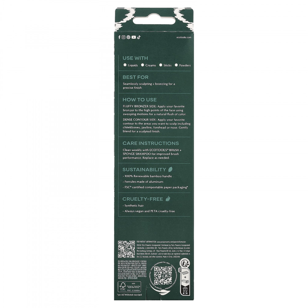Инструкции по уходу. Еженедельно очищайте щетку и губку шампунем Ecotools®, чтобы улучшить ее работу. Заменяйте по мере необходимости.