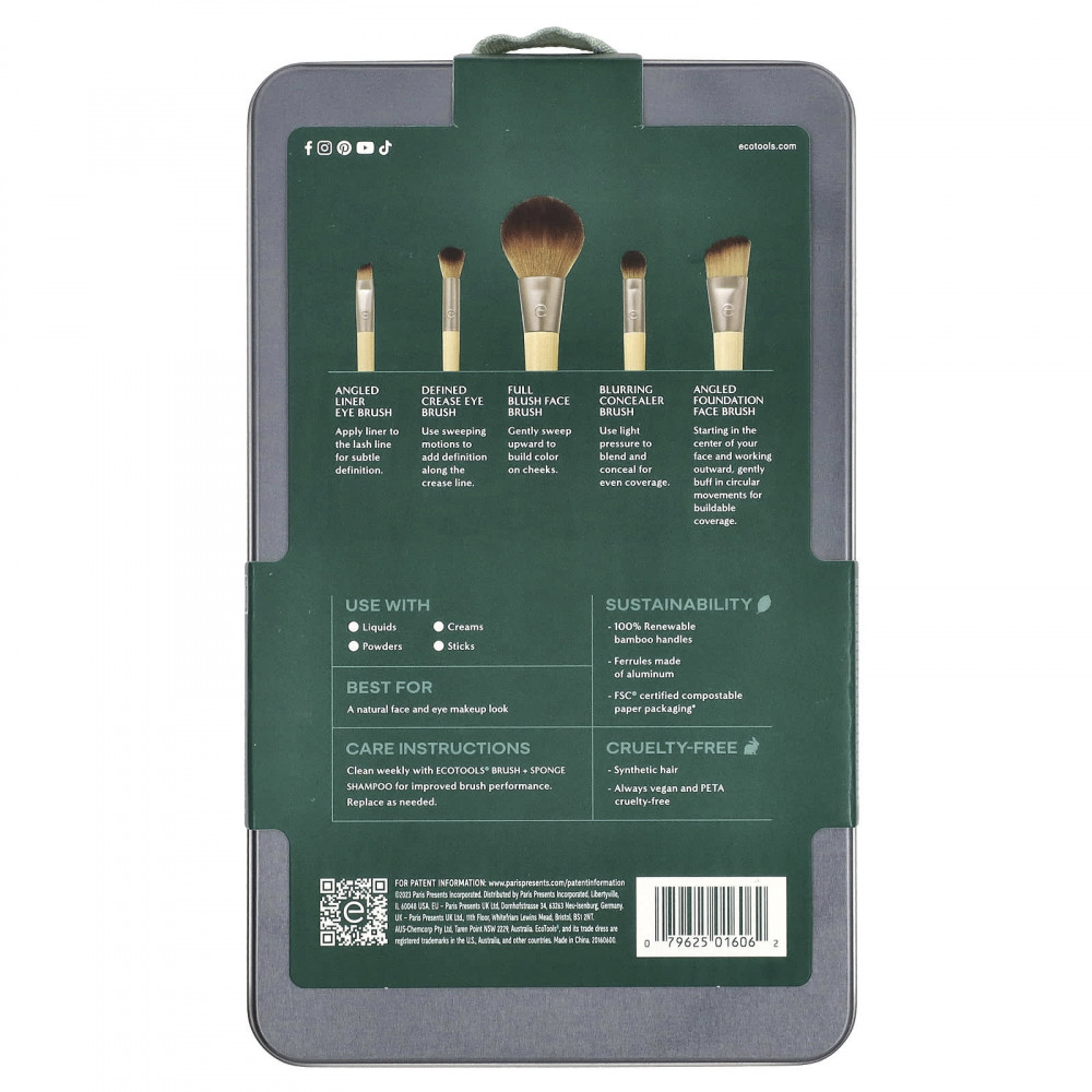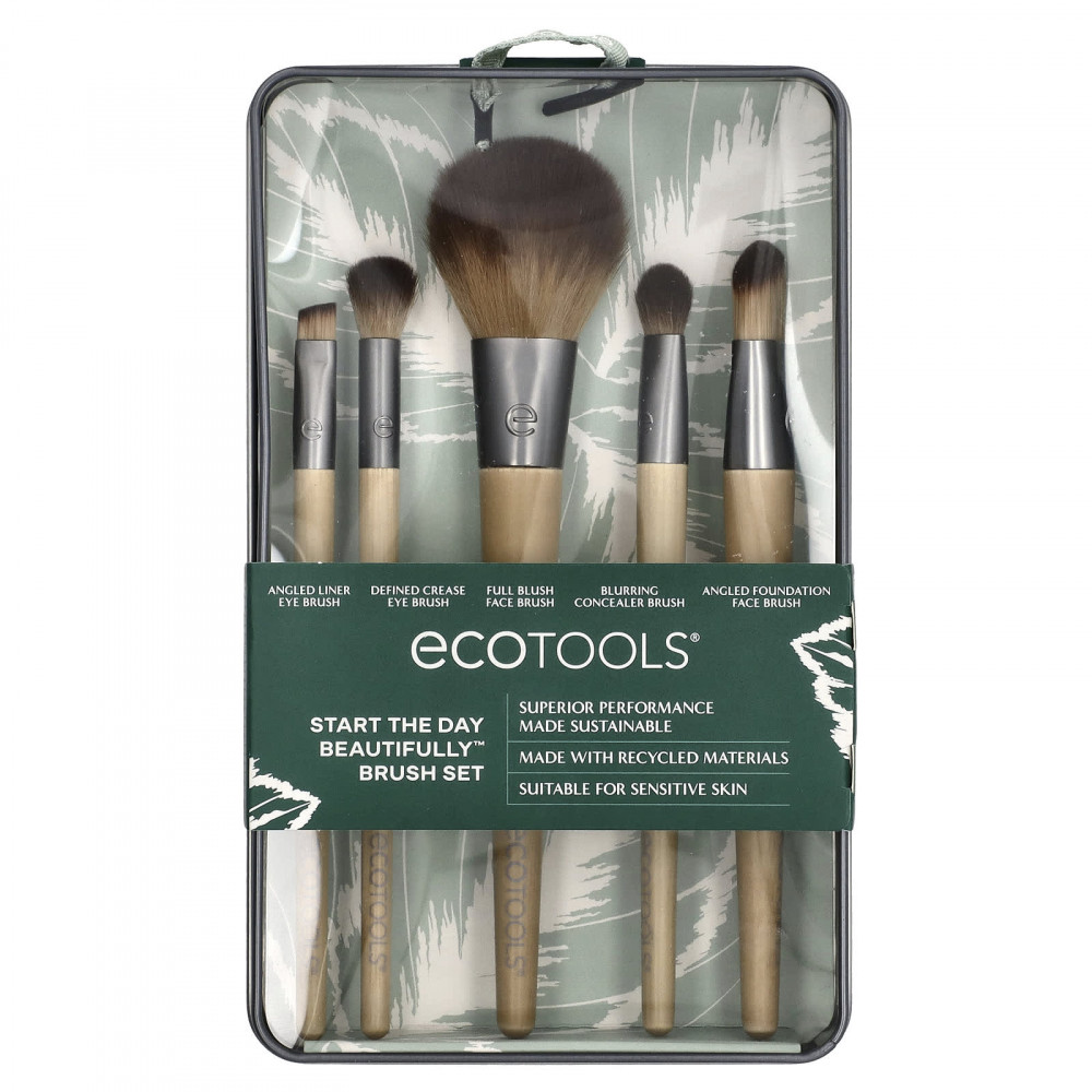 В набор «Начни день красиво» входят 5 основных кистей в жестяном футляре многоразового использования, которые упростят вашу ежедневную процедуру нанесения макияжа.