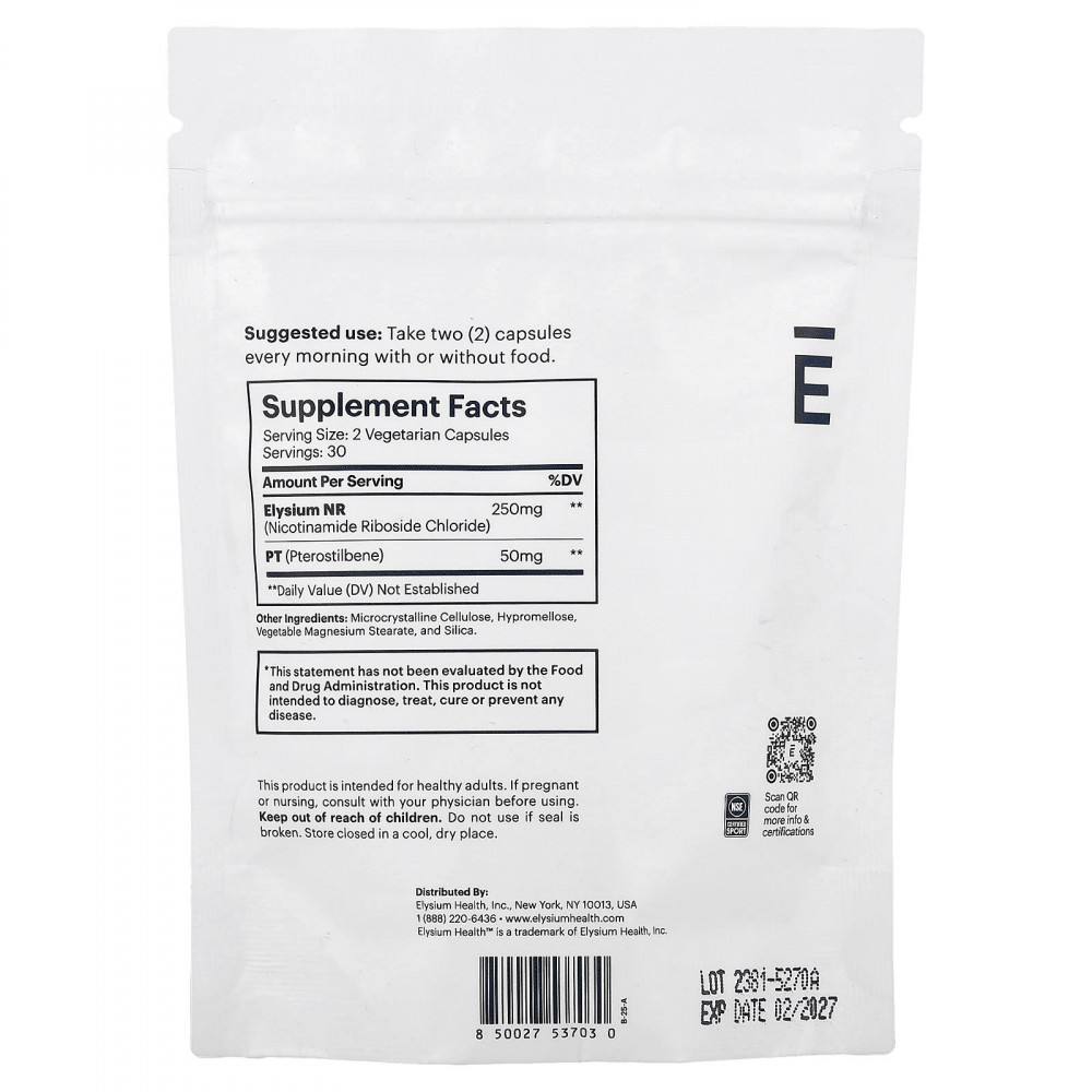 Синергетическое сочетание запатентованного никотинамид рибозида (NR-E) высокой чистоты от Elysium с мощным антиоксидантом птеростильбеном (PT) делает Basis чрезвычайно эффективным.