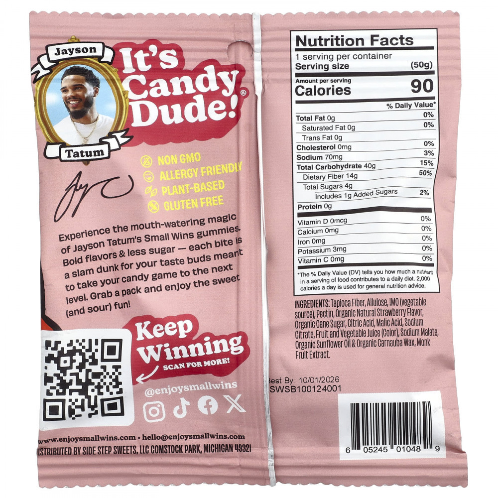 Попробуйте магию аппетитных жевательных таблеток Little Wins от Jayson Tatum. Насыщенный вкус и меньше сахара: каждый кусочек конфеты разглаживает ваши вкусовые рецепторы, помогая перейти на новый уровень вкусовых рецепторов. Хватайте упаковку и наслаждайтесь кисло-сладким вкусом!