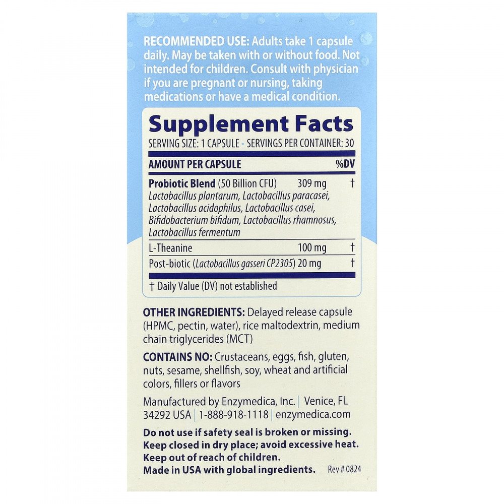 Клинически изученная смесь пробиотиков и постбиотиков для снятия умственного стресса, улучшения качества и Глубины сна в сочетании с L-теанином и дополнительными базовыми штаммами пробиотиков.