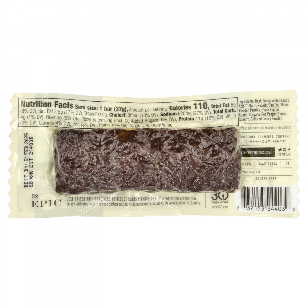 Вдохновленный традиционным мексиканским стилем барбакоа, приготовленный на медленном огне, наш батончик на 100% травяного откорма и проверенный на основе говядины в стиле барбакоа приправлен несколькими ароматными специями для яркого вкуса с легким нагревом.