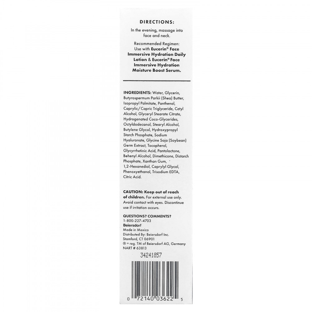 Рекомендуемый режим: Используйте с ежедневным иммерсивным увлажняющим лосьоном для лица Eucerin® и иммерсивной увлажняющей сывороткой для лица Eucerin®.