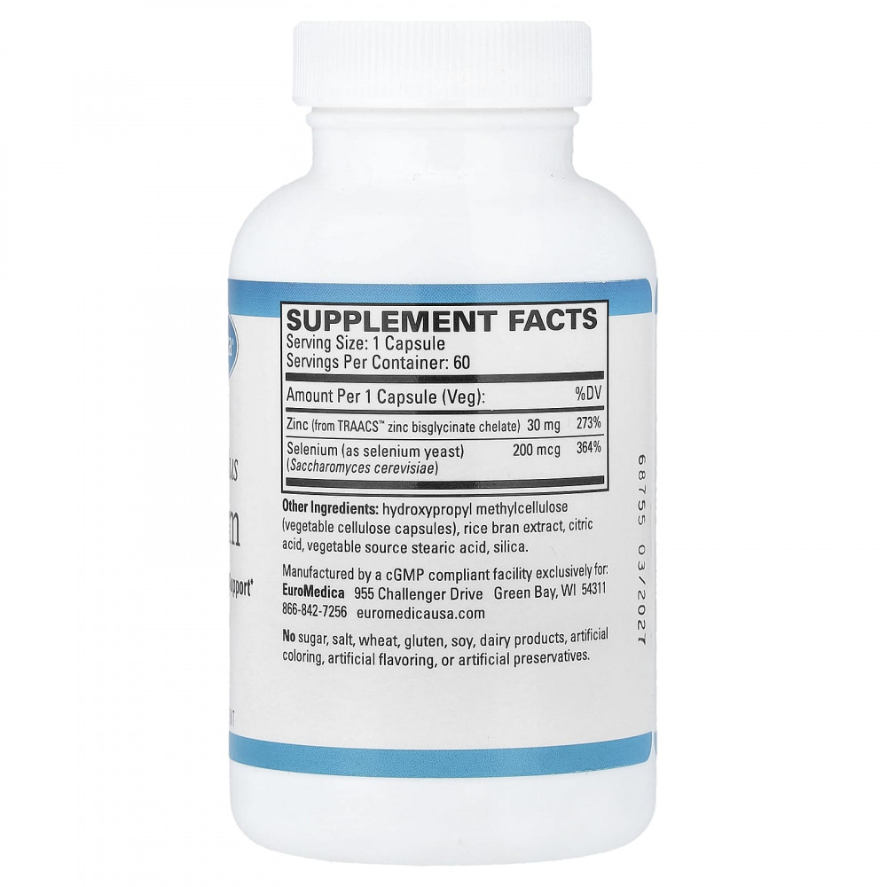 Эти минералы необходимы для вашей иммунной системы, здоровья клеток и нормальной реакции на воспаления.† Цинк и селен обеспечивают легко усваиваемые и биодоступные формы каждого питательного вещества, улучшающие общее состояние здоровья.