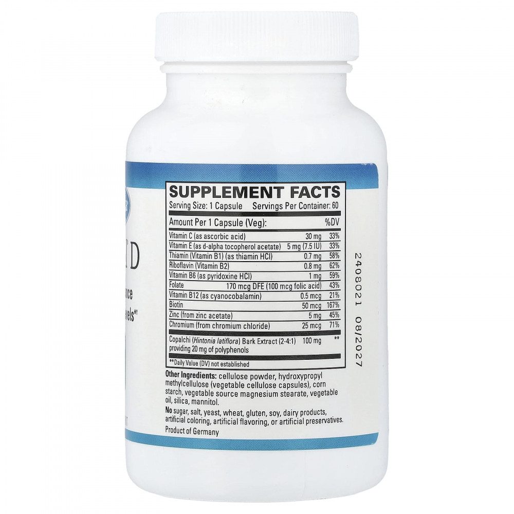 В состав этой добавки входит эксклюзивная хинтония широкоцветковая (Hintonia latiflora), эффективное растение, витамины B, C и E, а также микроэлементы хром и цинк. Эффективность этой формулы подтверждена более чем 70-летними исследованиями в Германии.