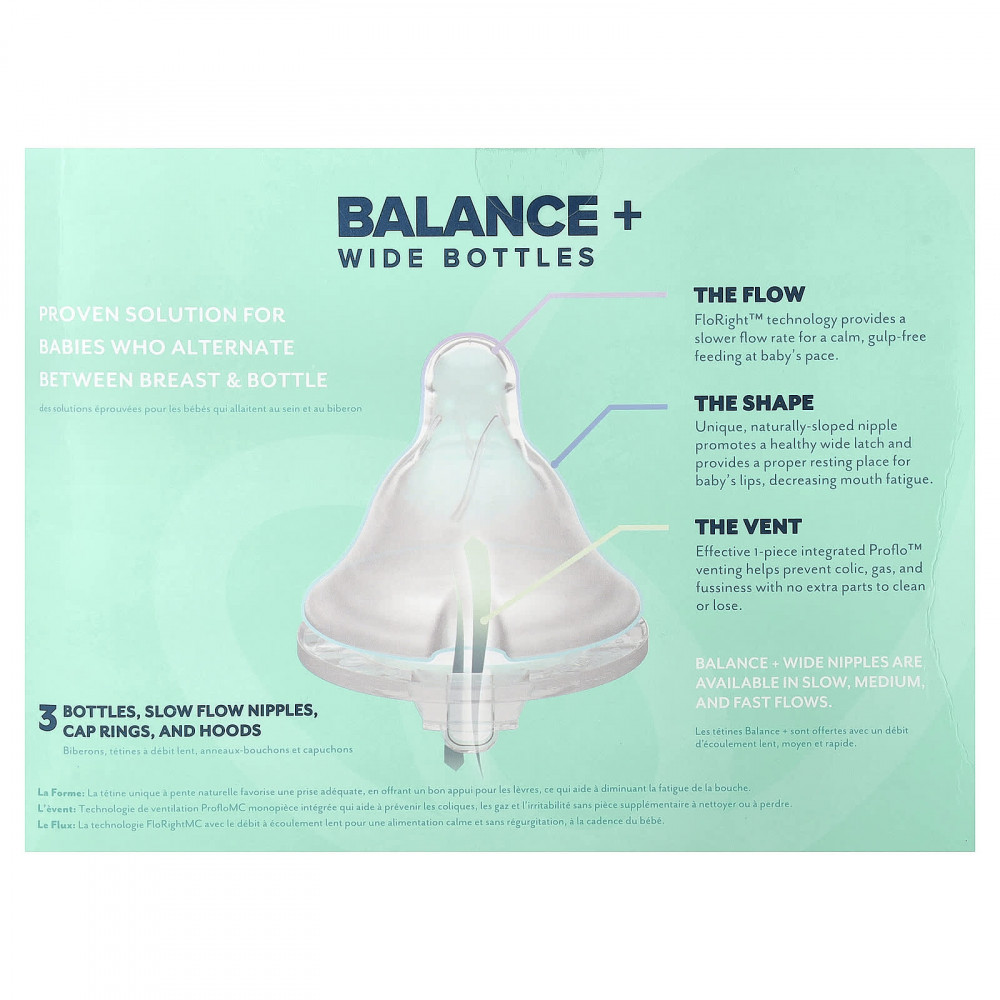 Соски Balance + Широкие соски доступны с медленным, средним и быстрым потоком.