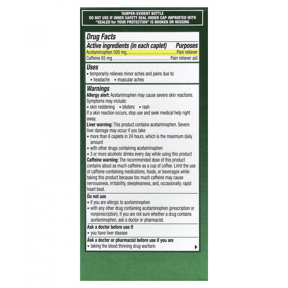 Предупреждение для печени: Этот продукт содержит ацетаминофен. Прием может привести к серьезному повреждению печени