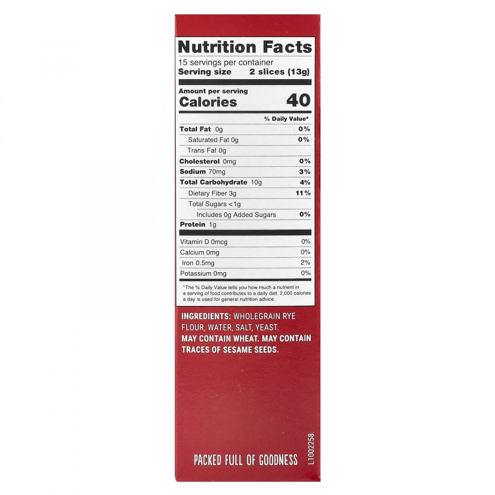 Finn Crisp содержит 100% цельнозерновых ингредиентов ржи.