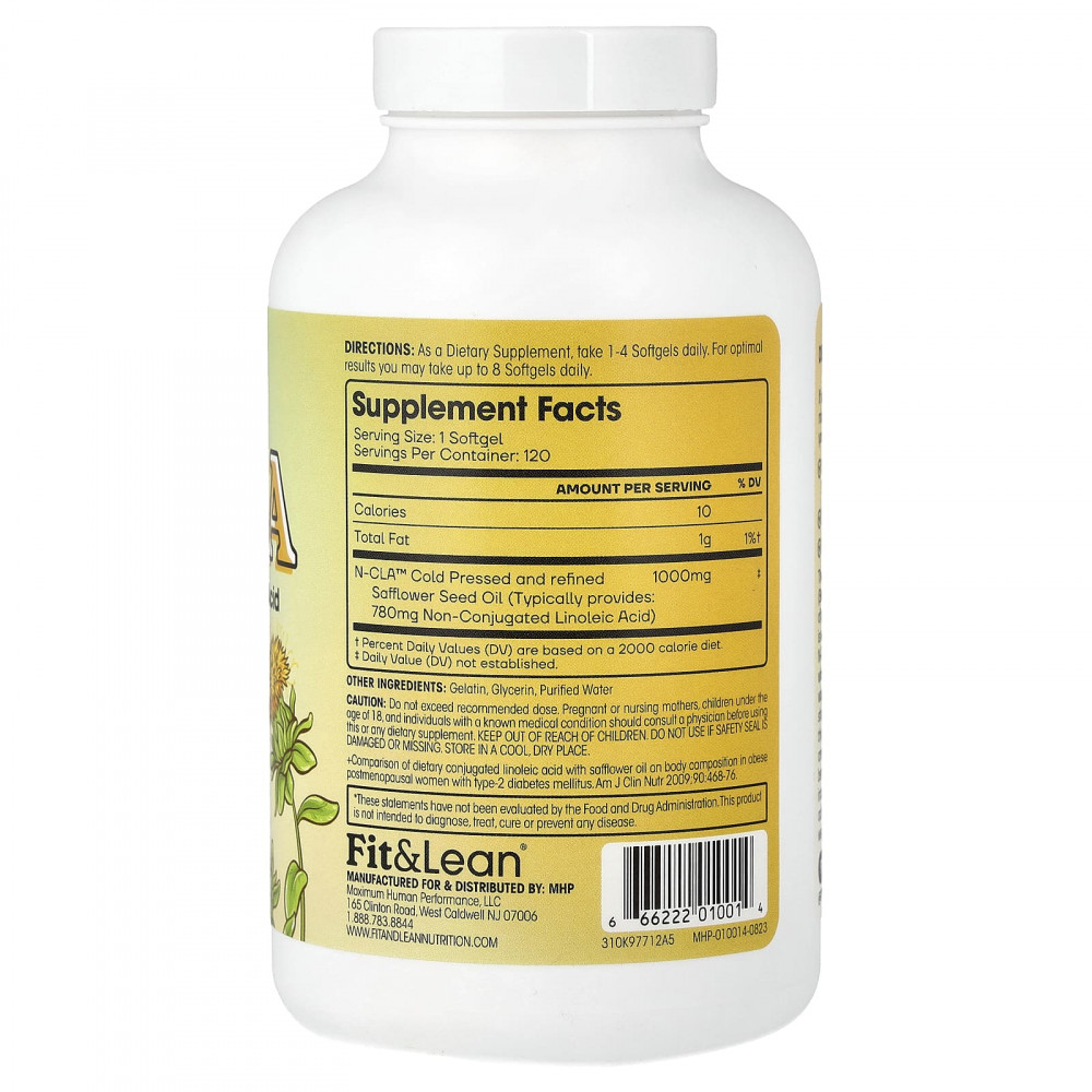 | N-CLA™ — холодный отжим и рафинированное Масло семян сафлора (обычно содержит: 780 мг неконъюгированной линолевой кислоты) | 1000 мг | ‡ |