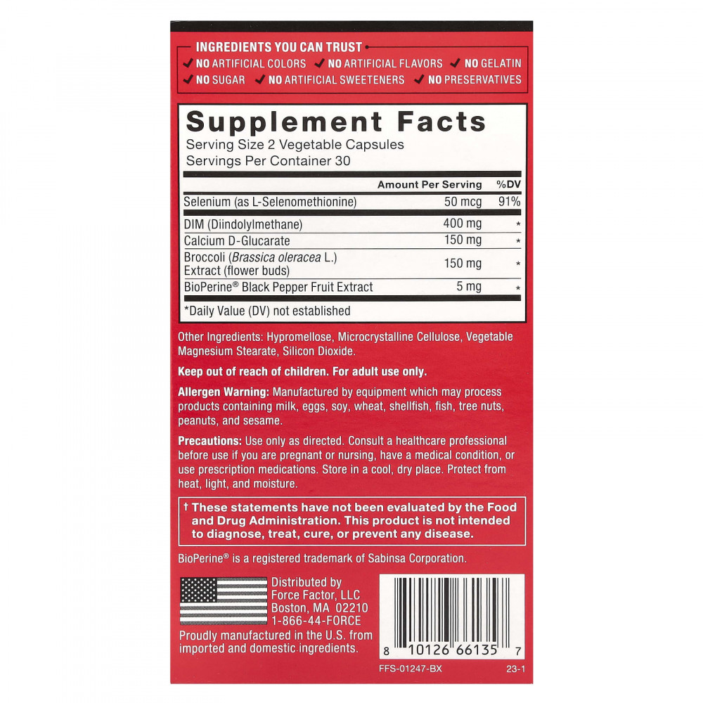 Force Factor® DIM Max содержит огромную дозу 400 мг, а также экстракт брокколи и d-глюкарат кальция, каждый из которых научно изучен на предмет способности помогать мужчинам максимизировать соотношение тестостерона и эстрогена. Эта комбинация является ключом к разблокированию более сбалансированного уровня гормонов, прокладывая путь к повышению жизнеспособности и физической работоспособности.