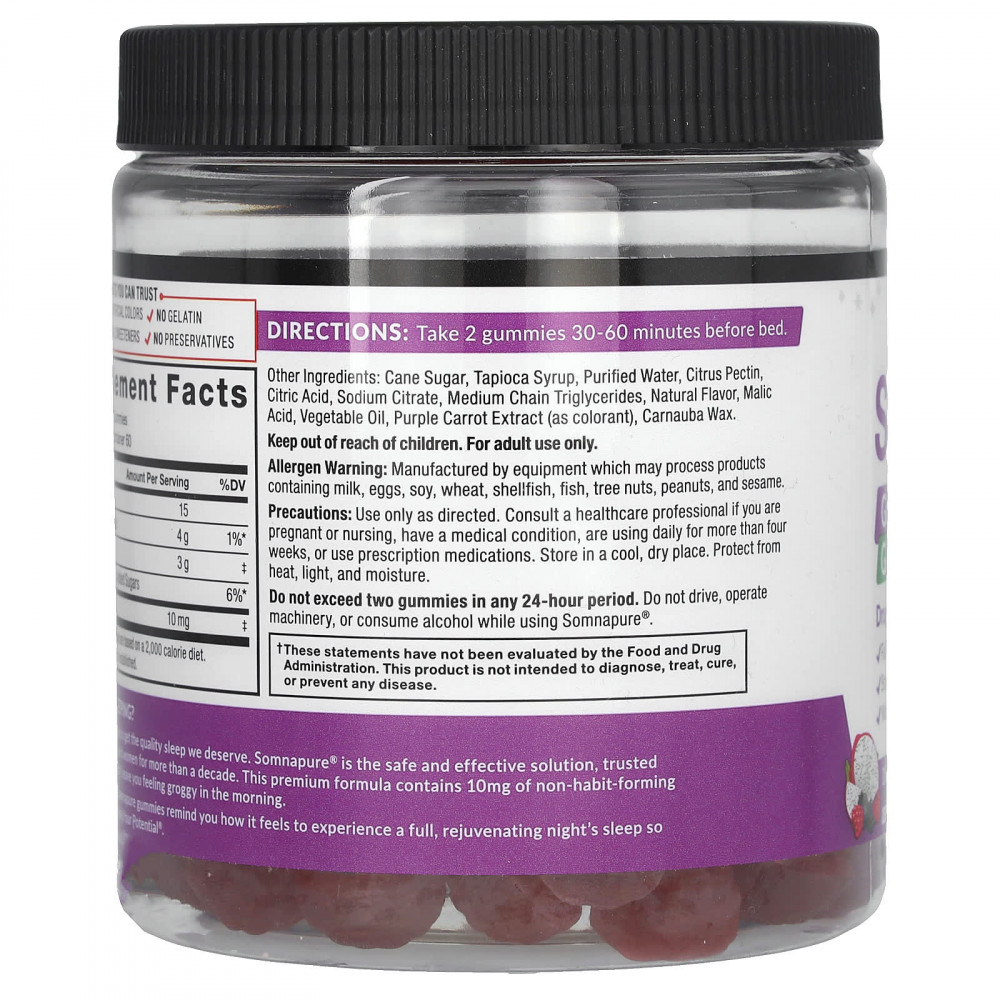 Многим из нас сложно получить качественный сон, которого мы заслуживаем. Somnapure® — это безопасное и эффективное решение, уже более десяти лет заслуживающее доверия бесчисленного количества мужчин и женщин. Эта формула премиального качества содержит 10 мг мелатонина, не вызывающего привыкания и сонливости по утрам.