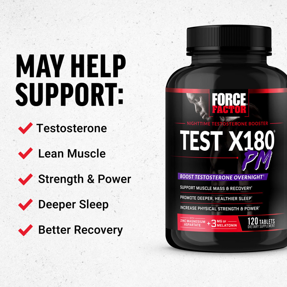 И чем лучше вы спите, тем лучше ваш организм может быть готов к любым испытаниям. Тест X180PM не только повышает уровень тестостерона, поддерживает мышечную массу и восстановление, а также увеличивает физическую силу, но также способствует более глубокому и здоровому сну. Это позволяет вашему организму работать с максимальной производительностью, помогая вам раскрыть свой потенциал (Unleash Your Potential®) 24 часа в сутки, 7 дней в неделю.