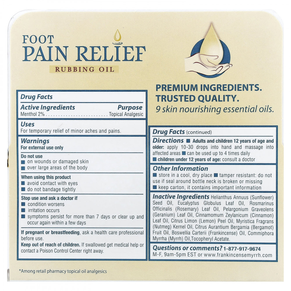 Временное облегчение боли в ступнях, пятках и лодыжках в виде легко наносимого масла для растирания.