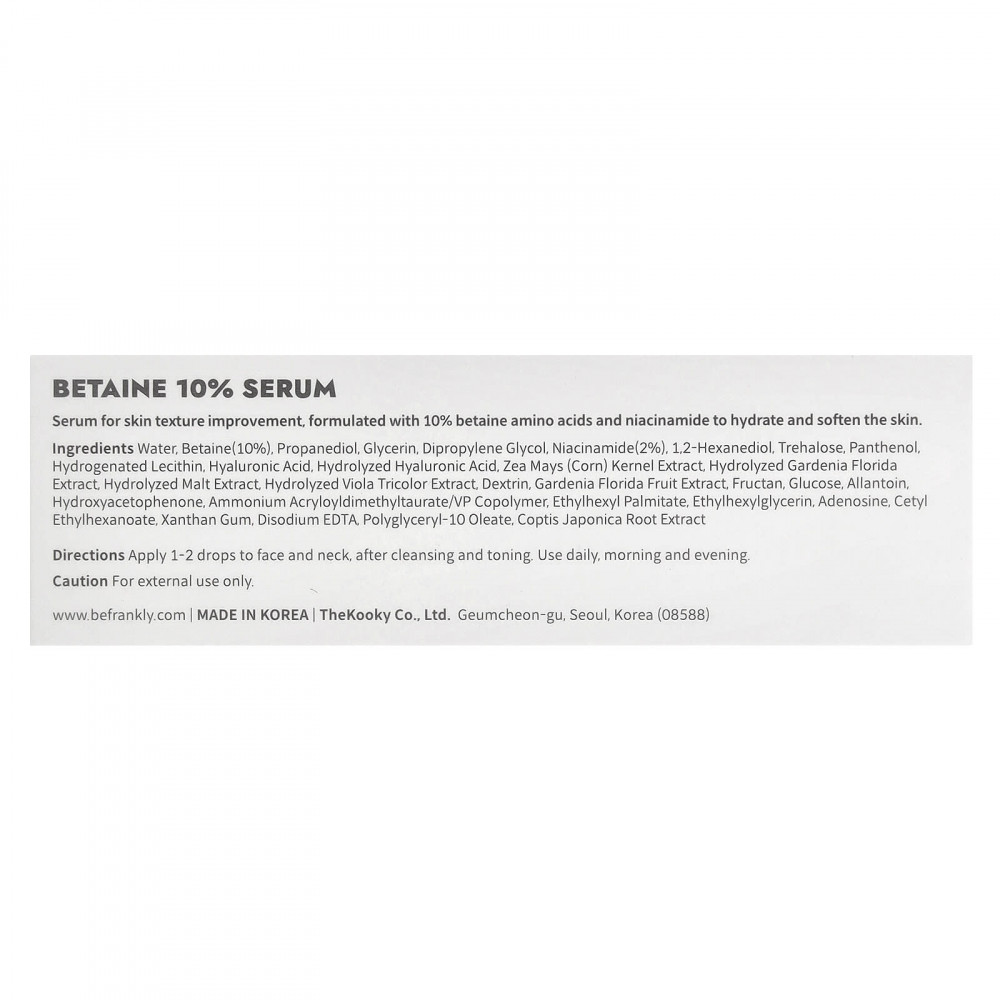 Сыворотка для улучшения текстуры кожи, в состав которой входят 10% аминокислот бетаин и ниацинамид для увлажнения и смягчения кожи.