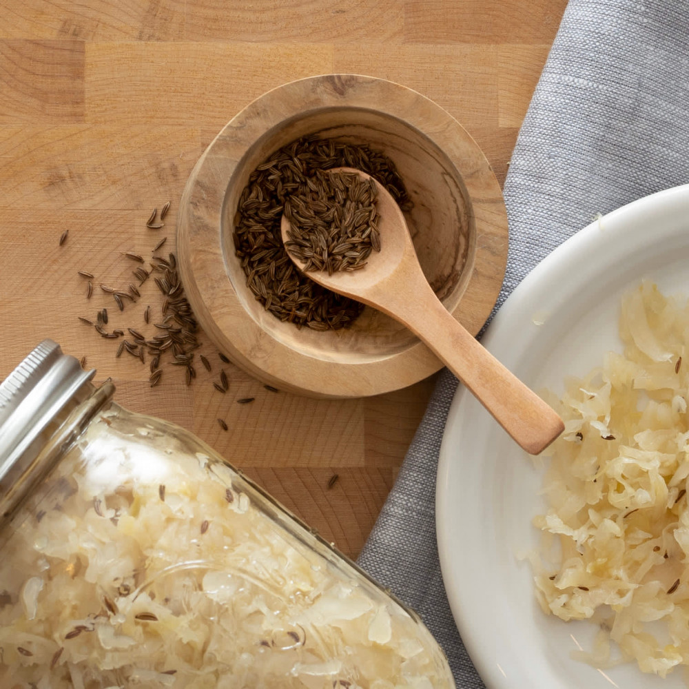 Rye bread lovers are familiar with caraway, but it's also delicious in biscuits and crackers, spiced seed cake, candies, cookies, cheese, pickles, apple dishes like pie and applesauce, noodle dishes, and herb butters. Try caraway seed in creamy soups and sauces and with a variety of vegetables--like beets, potatoes, cauliflower, carrots, green beans, cucumber salads, asparagus and creamed onions. Caraway lightens the flavor of heavy meats and is often sprinkled on mutton, roast pork, liver, lamb and stew meat before cooking.