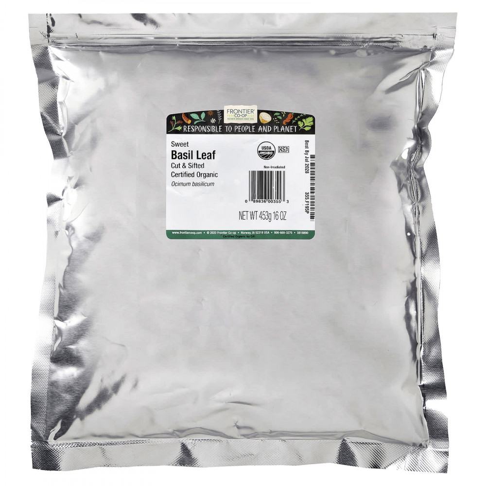 Базилик очень популярен в итальянской и американской кухне, он также используется во французской кухне, где он является важным ингредиентом смесей Fines Herbs и Provence herbs de Provence. Органические нарезанные и просеянные листья сладкого базилика Frontier Co-op® имеют теплый, сладкий и слегка мятно-перичный вкус.