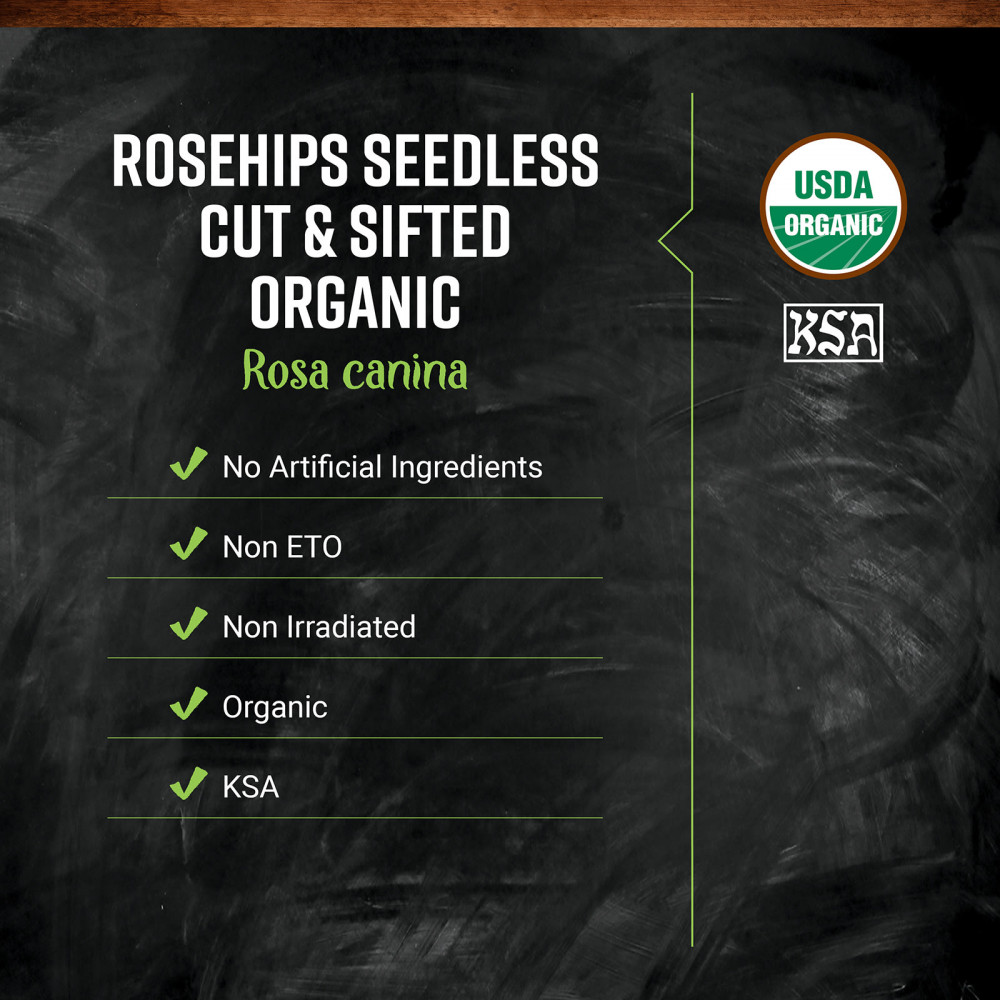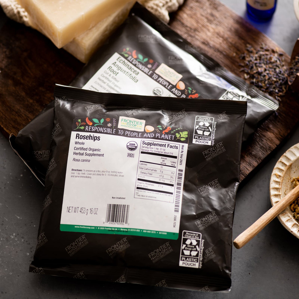 Красно-оранжевые плоды органического нарезанного и просеянного шиповника Frontier Co-op используются для приготовления восхитительного травяного чая для хорошего самочувствия, а также в качестве ингредиента в самых разных блюдах и напитках, таких как джем, желе, сиропы, чаи, пироги, хлеб, вина и мармелад. Иногда их используют и для поделок своими руками. Шиповник также известен под названием «дикая роза».