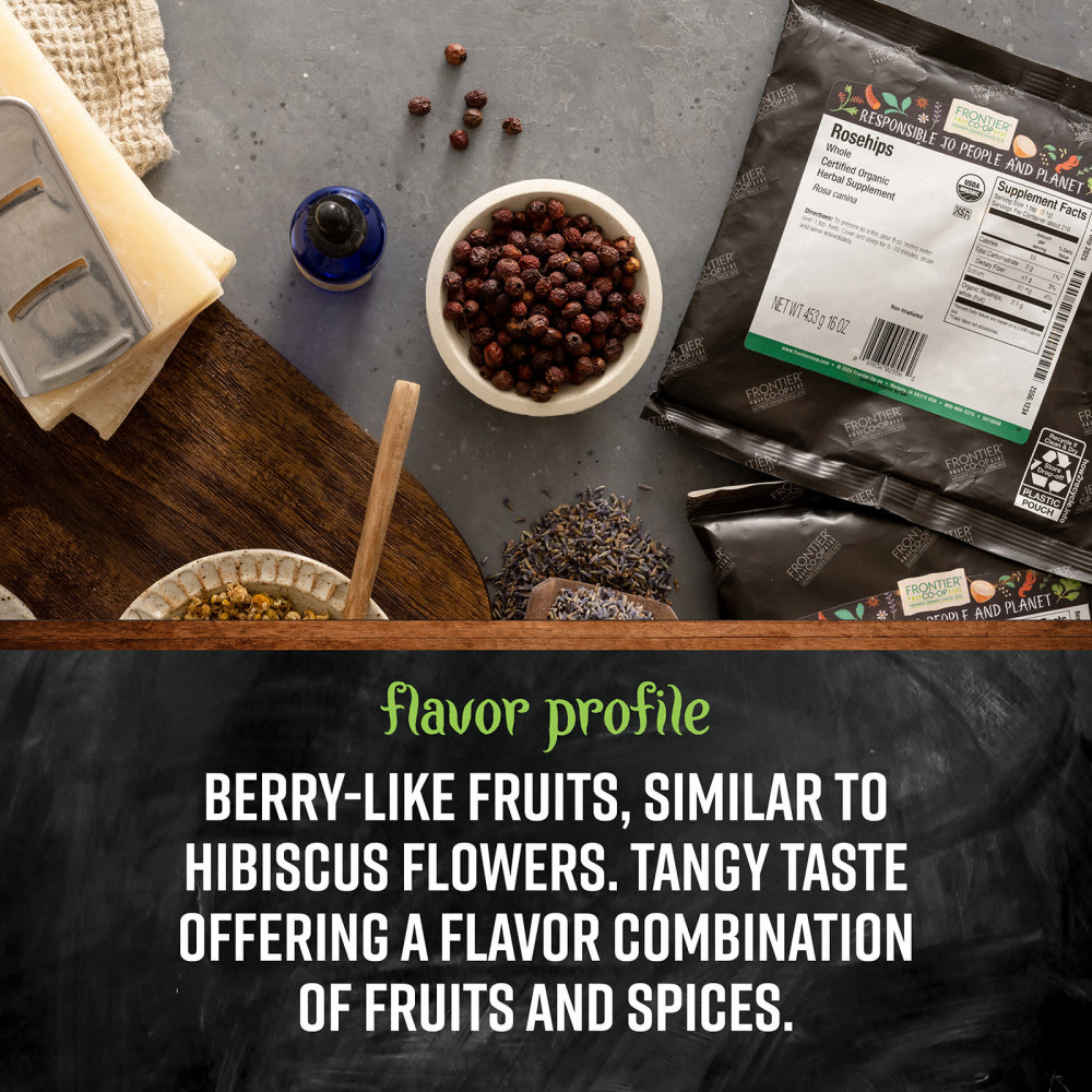 ЦВЕТОЧНЫЙ АРОМАТ. Органический шиповник без косточек Frontier Co-op — это плоды с терпким вкусом, похожие на ягоды. Они совсем не похожи на розы; по своему аромату они почти не отличаются от цветков гибискуса. Они предлагают уникальное вкусовое сочетание фруктов и специй.