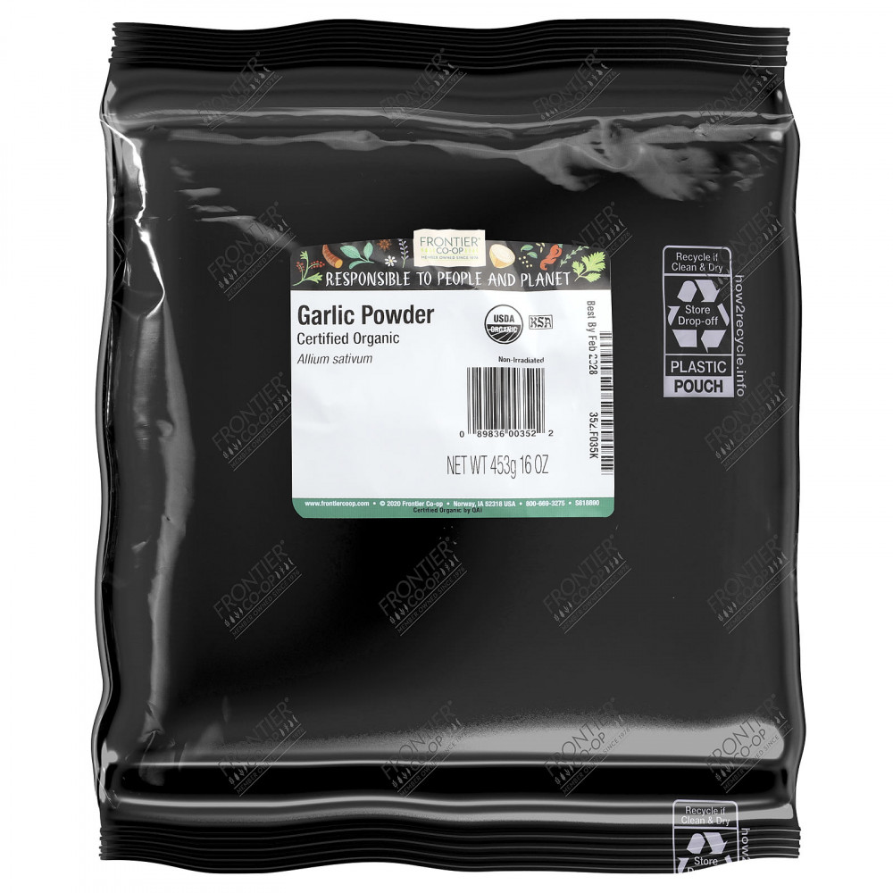 Чесночный порошок обычно используется в самых разных пикантных блюдах благодаря его насыщенному, острому и слегка пикантному вкусу. Проникающий аромат и вкус органического чесночного порошка Frontier Co-op®, который представляет собой измельченные обезвоженные головки чеснока, характерны для таких блюд, как паста, пицца, картофель и курица-гриль, а также соусов, маринадов и заправок. Чесночный порошок также является распространенным ингредиентом смесей специй.