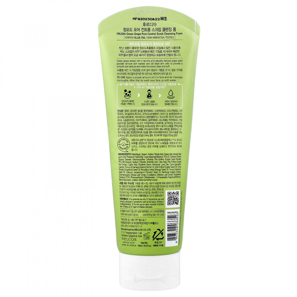 Экстракт зеленого винограда, богатый танинами, и порошок из виноградных косточек натурального происхождения удаляют шлаки и старые омертвевшие клетки кожи, обеспечивая гладкость текстуры кожи и делая поры чистыми и мягкими.