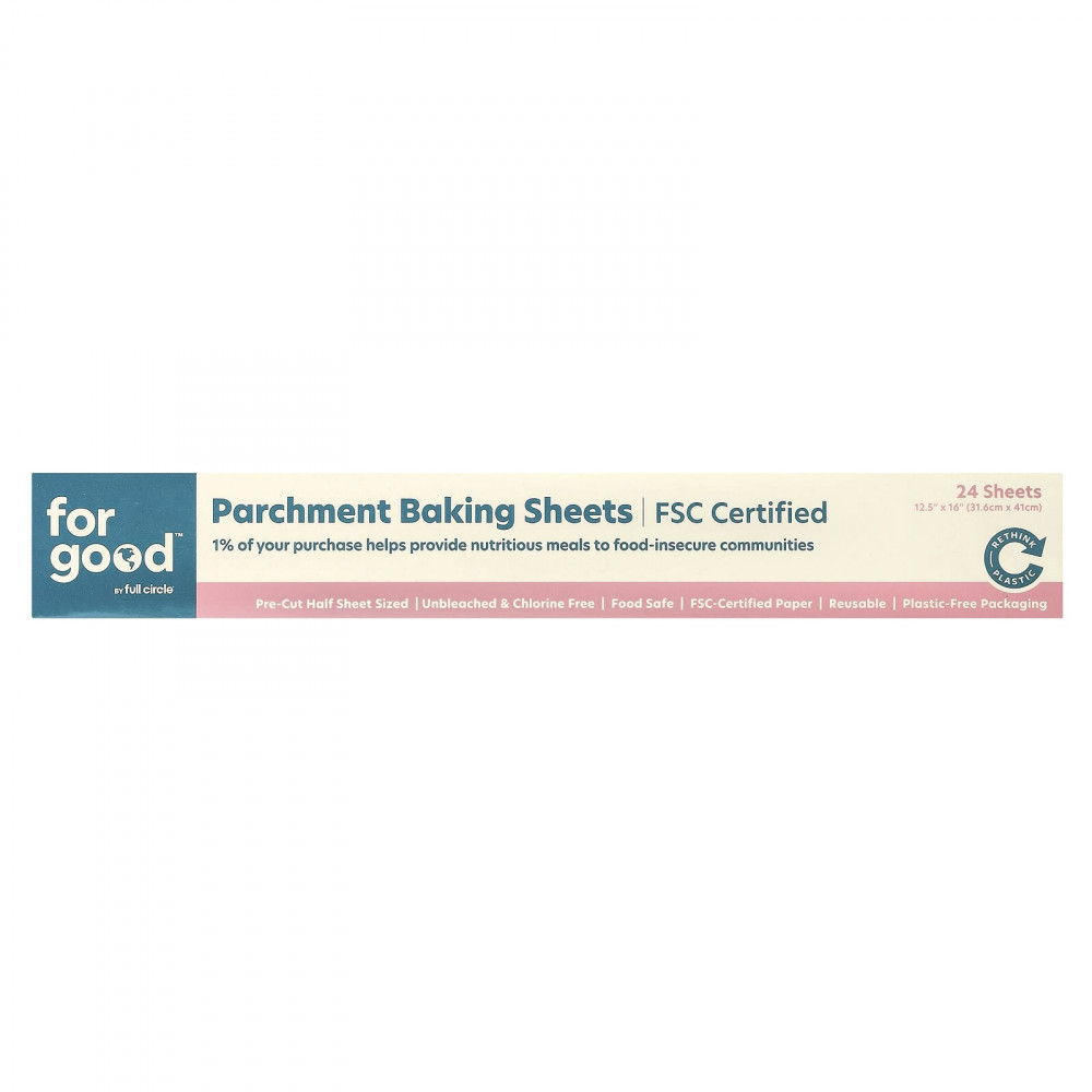 Полностью натуральная пергаментная бумага For Good, разработанная экспертами Full Circle, работает так же хорошо, как и обычная пергаментная бумага, но не содержит вредных веществ.