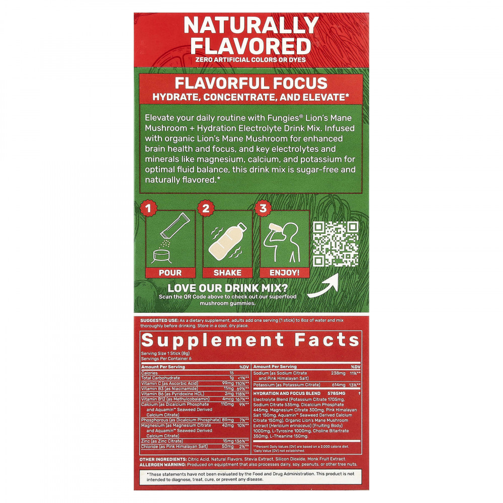 Улучшите свою повседневную жизнь с помощью смеси для приготовления напитка ежовик гребенчатого с электролитами для гидратации от Fungies®. Эта смесь для приготовления напитков, содержащая органический гриб ежовик гребенчатый для улучшения здоровья мозга и концентрации внимания, а также ключевые электролиты и минералы, такие как магний, кальций и калий, для оптимального баланса жидкости, не содержит сахара и имеет натуральный ароматизатор.