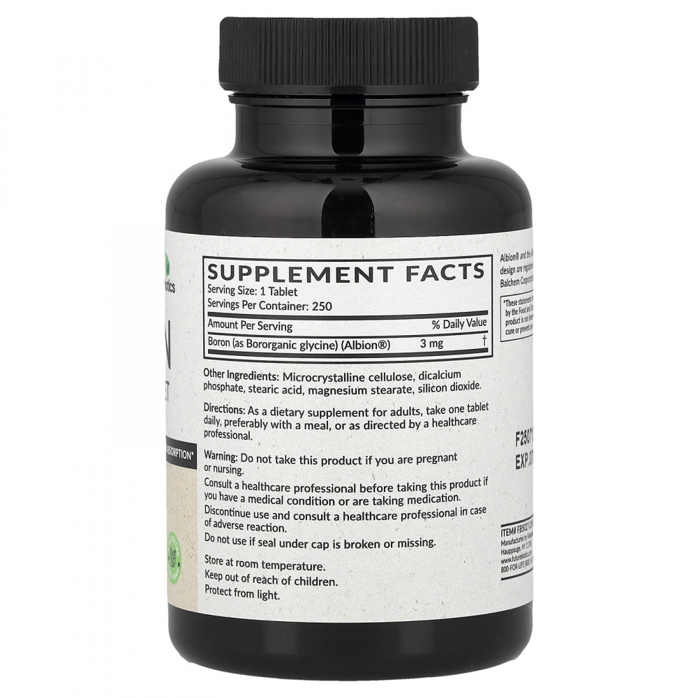 Бор Futurebiotics содержит 3 мг бора (в виде бороганового глицина) для поддержания прочности костей*. Благодаря использованию бора Futurebiotics от ведущего производителя хелатных минералов (Albion Minerals) бор 3 мг от Futurebiotics обеспечивает превосходное усвоение, стабильность и общее качество.