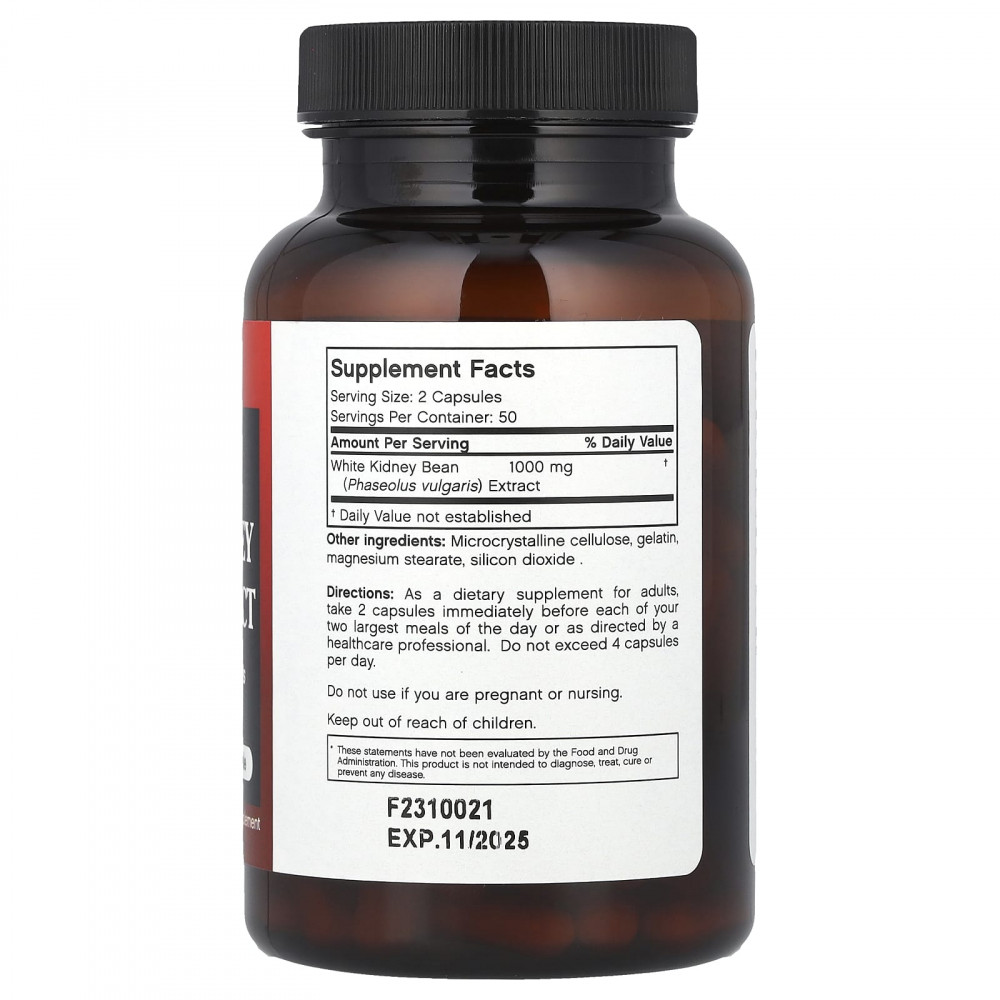 Одна капсула содержит 500 мг чистого экстракта белой фасоли Futurebiotics без добавления кофеина или других стимуляторов.