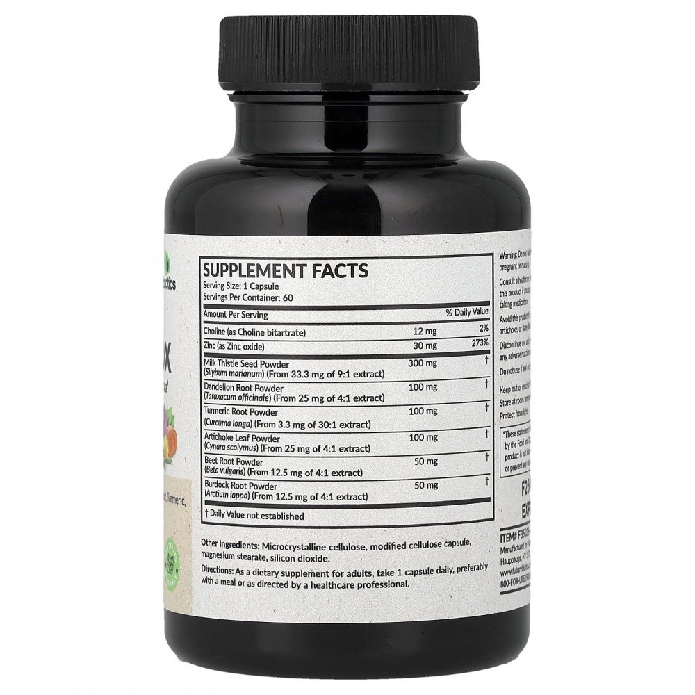 Liver Detox от Futurebiotics содержит ингредиенты премиального качества, которые работают синергетически, поддерживая здоровую функцию печени. Наше усовершенствованное средство для детоксикации и очищения содержит расторопшу, корень одуванчика, куркуму, листья артишока, корнеплод свеклы и другие ингредиенты, обеспечивающие превосходную поддержку. Futurebiotics Liver Detox не содержит ГМО и тщательно производится квалифицированными профессионалами на нашем современном предприятии, расположенном в городе Хауппож, штат Нью-Йорк.