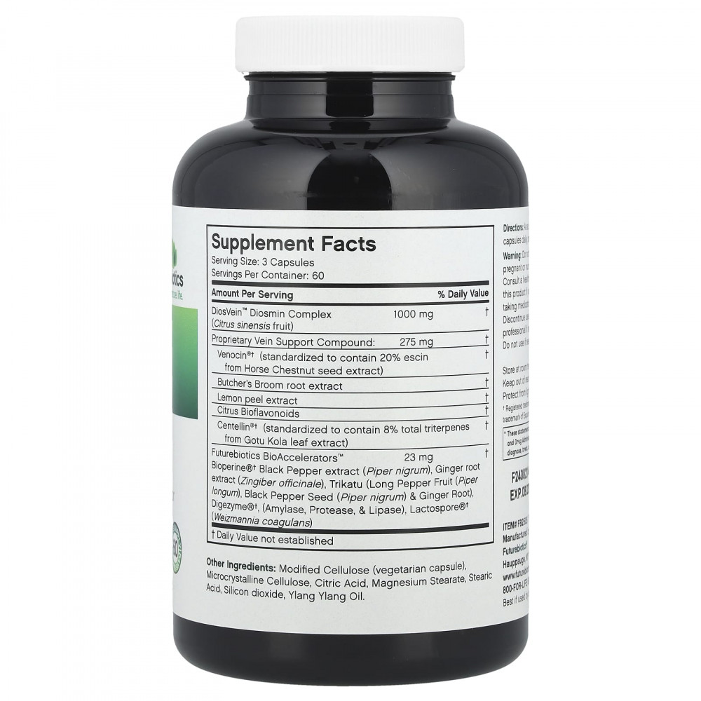 Повреждённые вены — распространённая проблема, которая возникает в результате повреждения и слабости стенок и клапанов вен и обычно образуется при повышении артериального давления в венах. Чаще всего это проявляется в ногах, поскольку вследствие стояния и ходьбы в нижней части тела повышается давление. Варикозное расширение вен может усугубляться из-за избыточного веса, поэтому чаще всего страдают люди с избыточным весом и ожирением, однако с возрастом оно может стать более распространённым. Добавка для здоровья вен VeinFactors от Futurebiotics содержит клинически изученную запатентованную смесь диосмина и гесперидина DiosVein. Эти антиоксидантные флавоноиды получены из кожуры цитрусовых. Было доказано, что они способствуют здоровью сердечно-сосудистой системы, поддерживая здоровый кровоток. Комплекс DiosVein изготовлен из «микронизированного» диосмина, который помогает улучшить усвояемость и эффективность. Принимайте по три капсулы наших добавок для поддержки вен ежедневно во время еды, чтобы поддерживать здоровое кровообращение в организме.