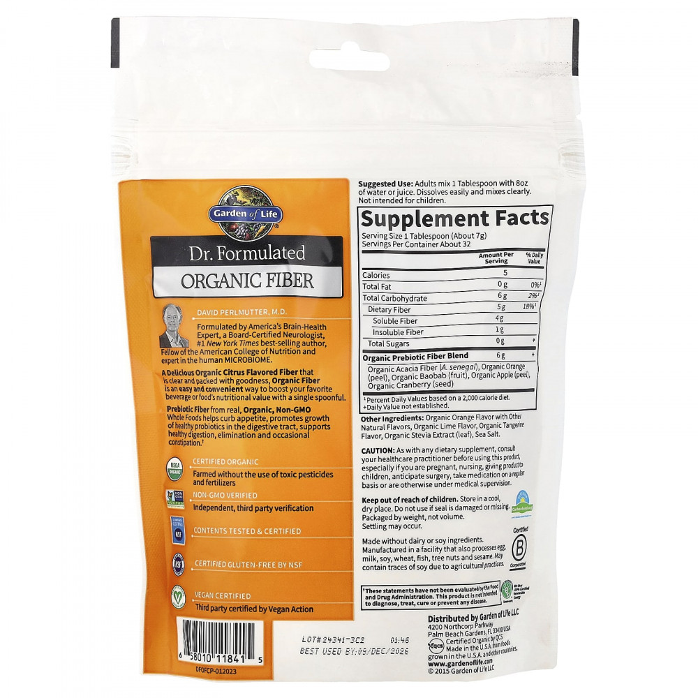 Пребиотическая клетчатка из настоящих органических цельных продуктов без ГМО помогает обуздать аппетит, способствует росту полезных пробиотиков в пищеварительном тракте, поддерживает здоровое пищеварение, очищение и периодические запоры.