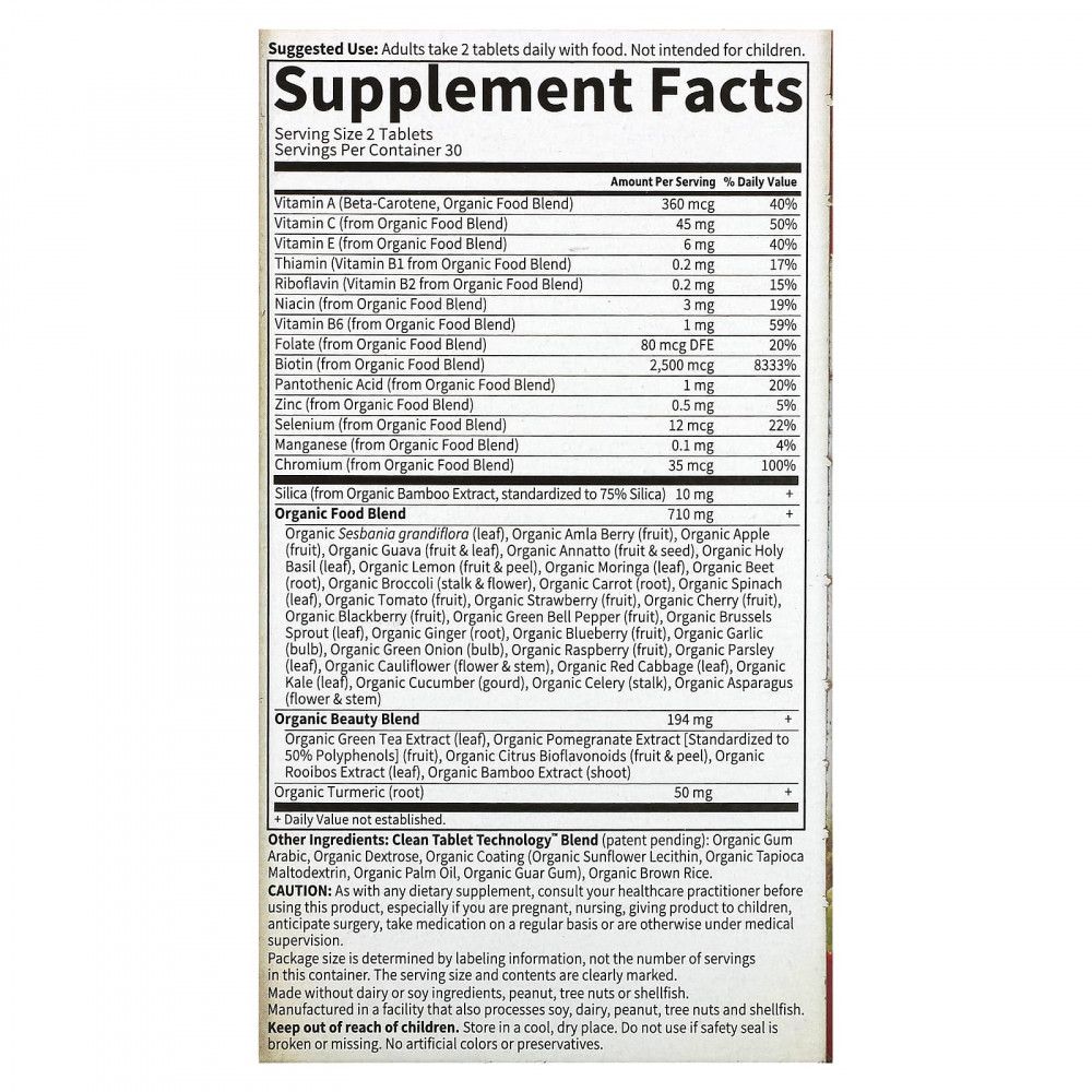 | Витамин C (из смеси органических пищевых продуктов) | 45 мг | 50% |
