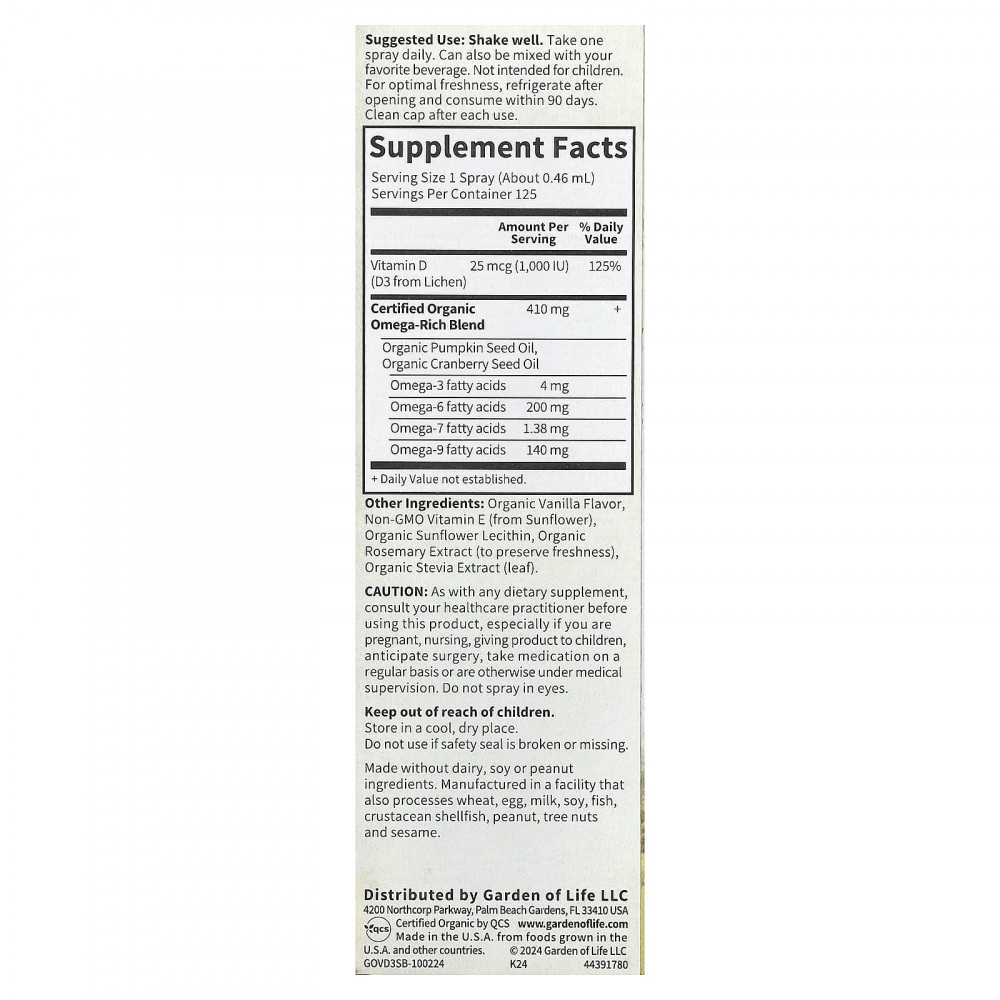 | Витамин D (D3 из лишайника) | 25 мкг (1000 МЕ) | 125% |