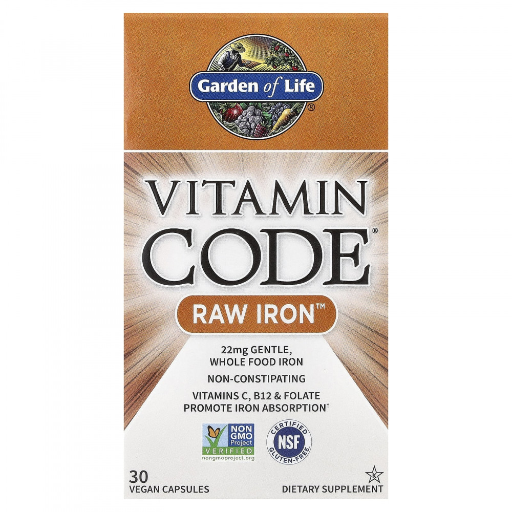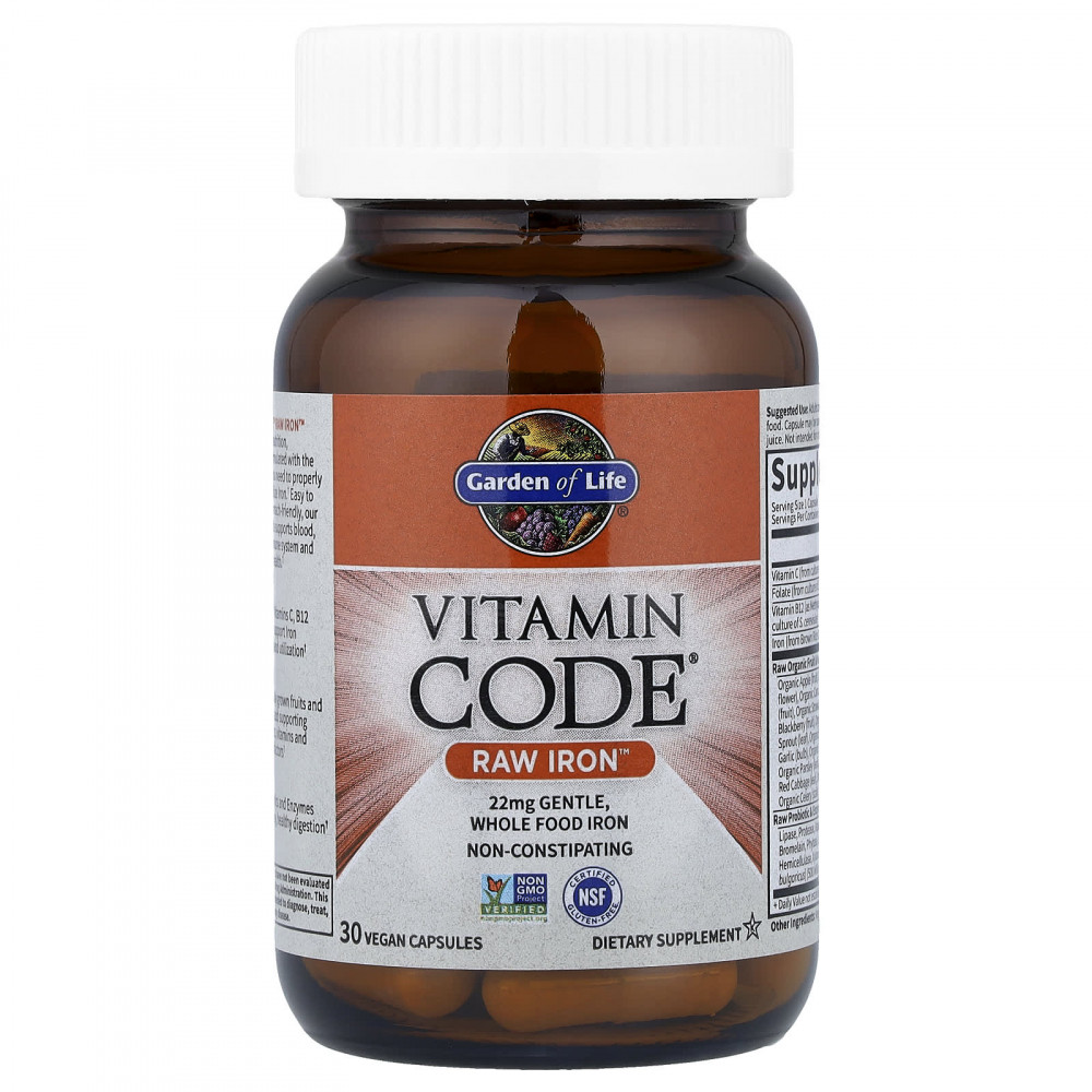 Vitamin Code® Raw Iron™ — это питательный комплекс из цельных пищевых продуктов, содержащий дополнительные питательные вещества, необходимые для правильного усвоения и использования железа. Наша уникальная формула легко усваивается и благоприятна для желудка. Она поддерживает здоровье крови, сердца, глаз, иммунной системы и репродуктивной системы.